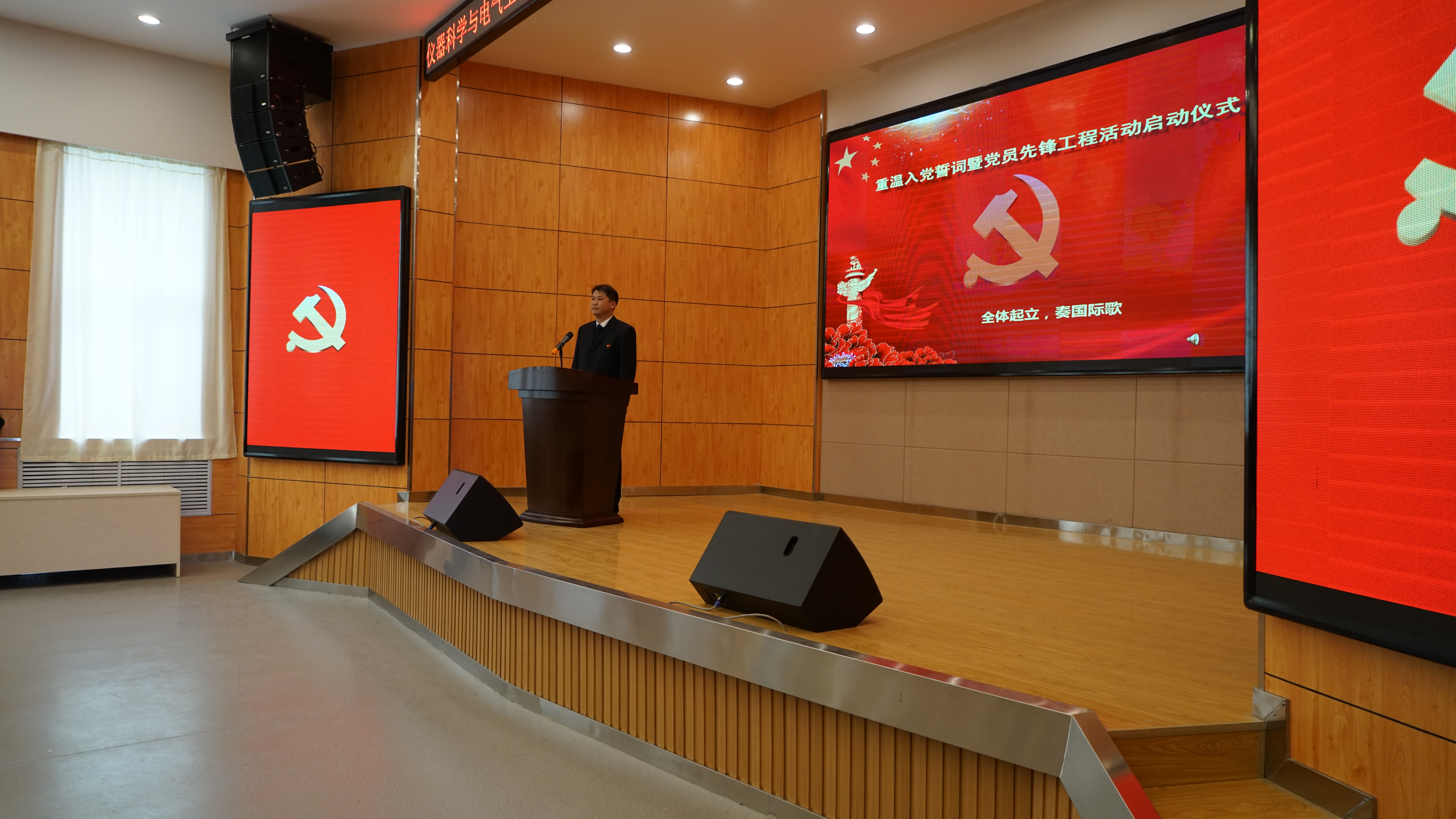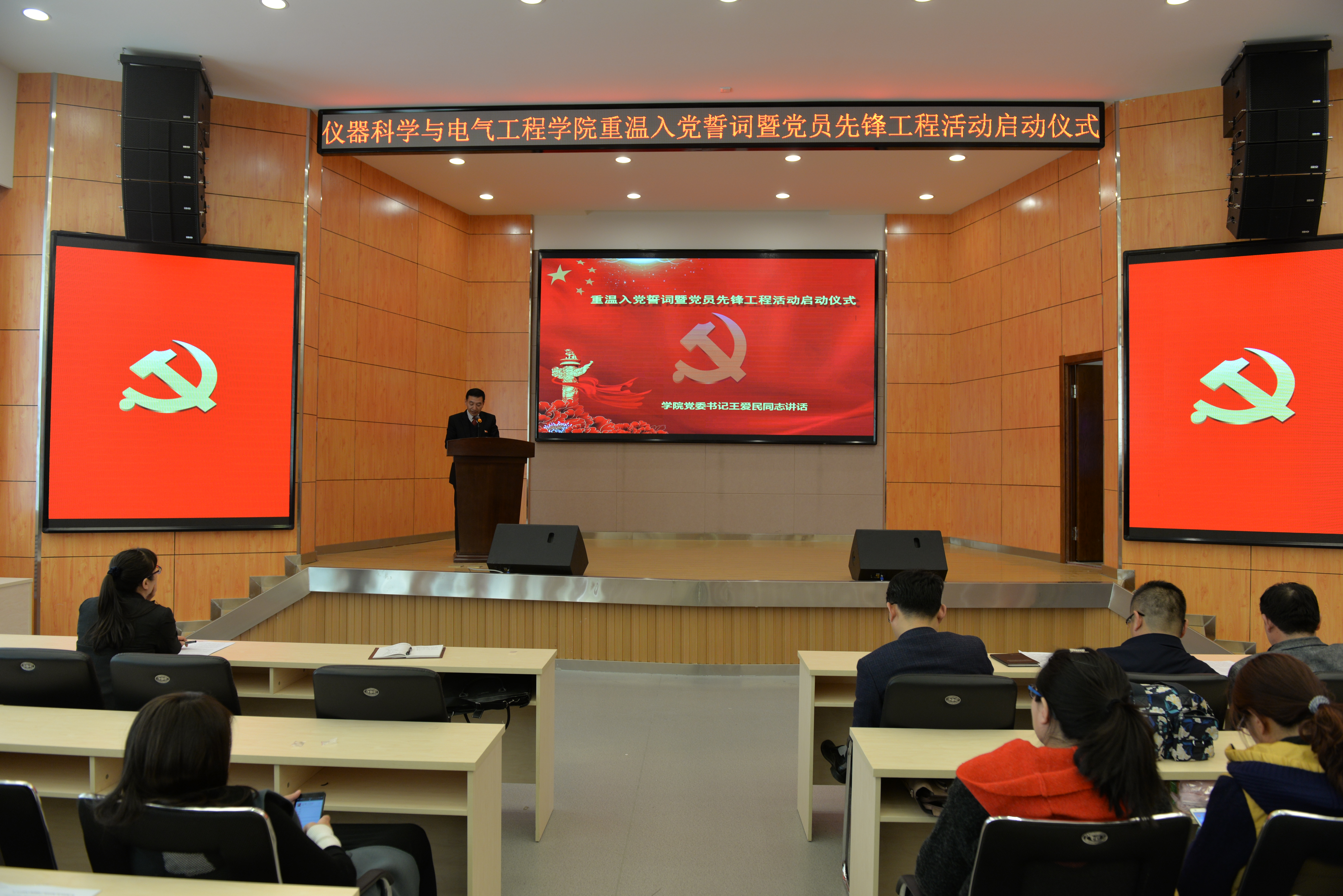 仪式在雄壮的《国际歌》中拉开序幕,全体党员在公司党委书记王爱民同志的领誓下面对党旗庄严宣誓,重温入党誓词,在激昂的宣誓声中重温入党誓词时刻的激动与庄严,激励广大党员要永葆党员先进性,用高标准严格要求自己,将以更加饱满的热情、更加敬业的态度、更加充足的干劲,更加踏实的作风,为365英国上市公司的发展再立新功。副经理葛晓野同志和院团委书记张昊宇同志分别宣读了《365英国上市公司教工党员先锋工程实施方案》和《365英国上市公司员工党员先锋工程实施方案》。仪器系党支部书记田宝凤同志、院研究生会主席黄维宁同学、校十佳老员工岳良广同学分别代表教工、研究生、本科生党员发言,他们表示一定会在党员先锋工程中积极带领支部党员按照实施方案的要求,设计好党员先锋岗、创建党员责任区、建立党员先锋队和党员先锋工程立项等工作,认真制定支部活动计划,创新活动形式、丰富活动内容,团结带领全体党员在党员先锋工程中做表率、当先锋。随后副经理嵇艳鞠同志为各支部书记发放了党员先锋工程学习书籍。