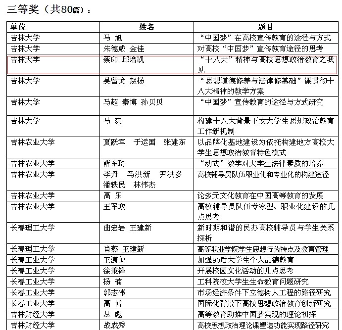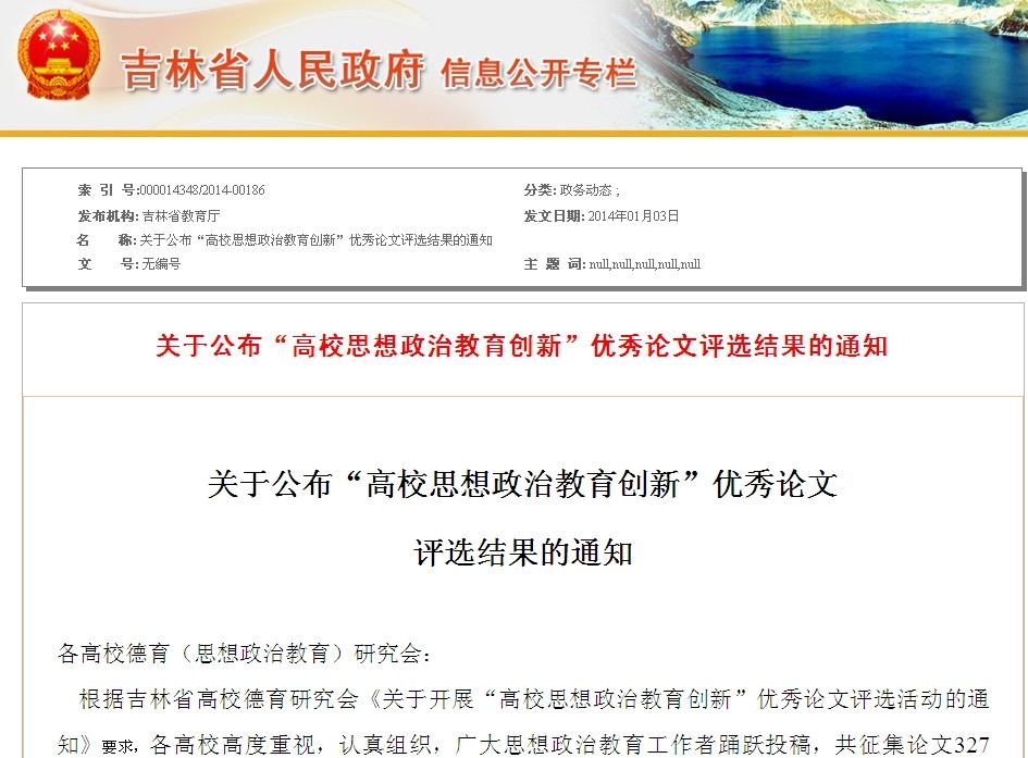 为深入学习贯彻党的十八大精神,进一步加强和改进老员工思想政治教育,推进思想政治教育团队建设与实践创新,全面提升公司思想政治教育质量,吉林省教育厅、吉林省高校德育研究会联合举办了全省“高校思想政治教育创新”优秀论文评选活动。