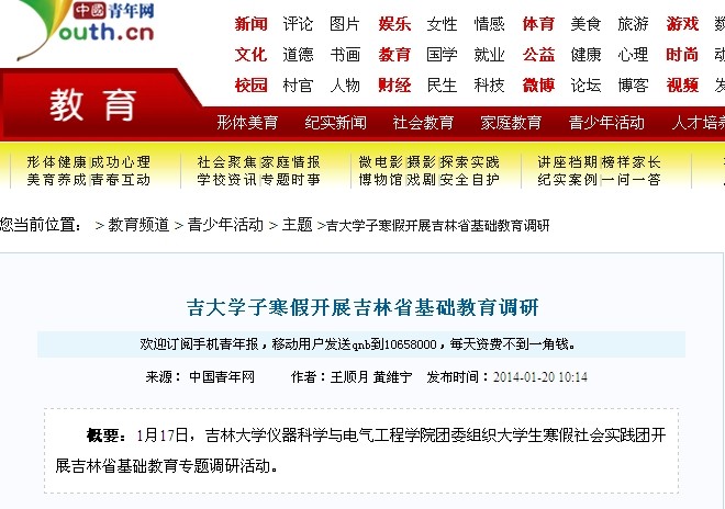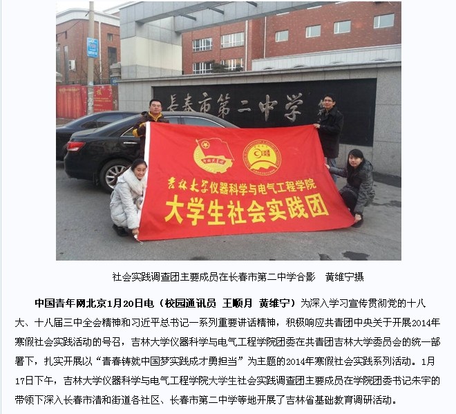 中国青年网《吉大学子寒假开展吉林省基础教育调研》