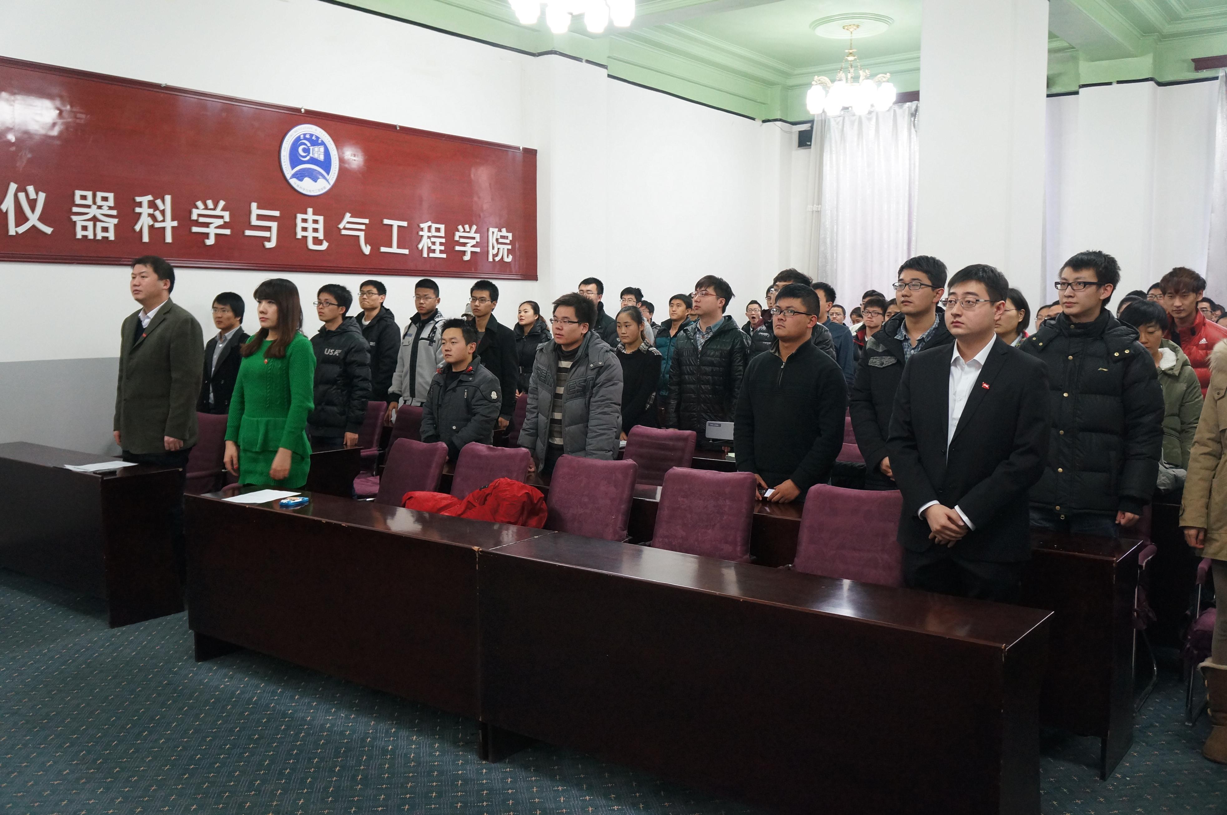 为深入学习贯彻党的十八大精神,深刻纪念“一二•九”员工爱国运动78周年,加强对全体党员的党性教育,激励全体党员认真践行入党誓言,365英国上市公司于2013年12月9日中午12:30在朝阳校区地质宫208室举行了纪念“一二•九”爱国运动78周年暨入党宣誓仪式。仪器科学与电气工程公司党委副书记兼副经理邱增凯、院员工工作办公室王冕、院团委书记兼本科生党支部书记朱宇,院团委副书记蔡印出席了此次仪式。公司本科生党支部全体党员、入党积极分子及9名新发展的党员参加了此次仪式,仪式由院团委书记兼本科生党支部书记朱宇主持。