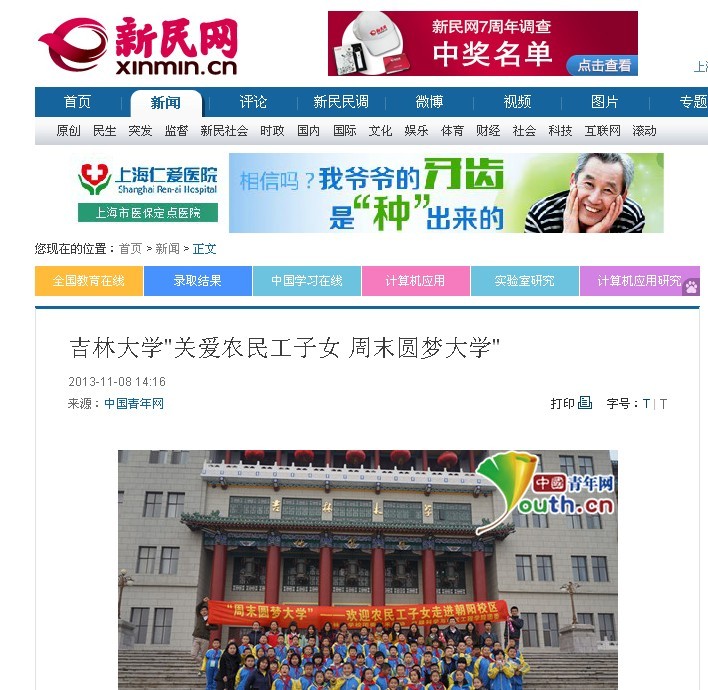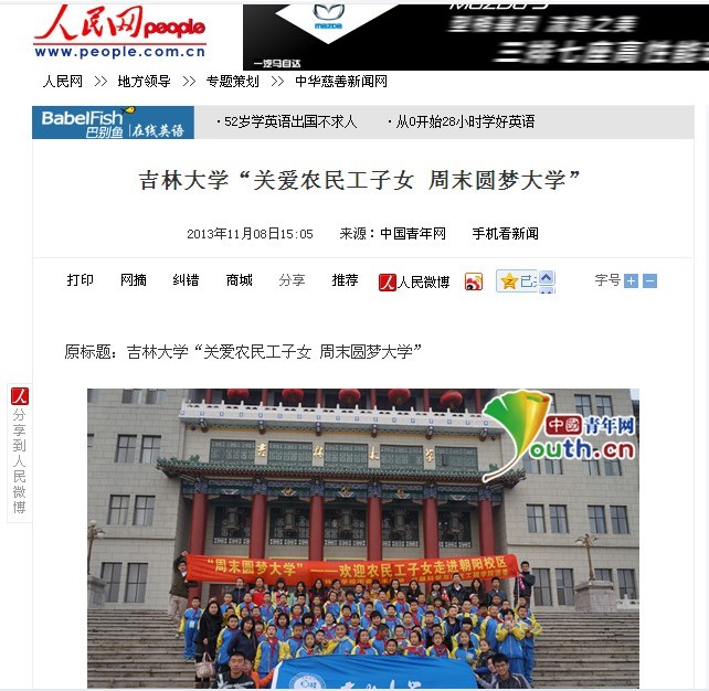 1、人民网 全文转载《365英国上市公司关爱农民工子女周末圆梦大学
