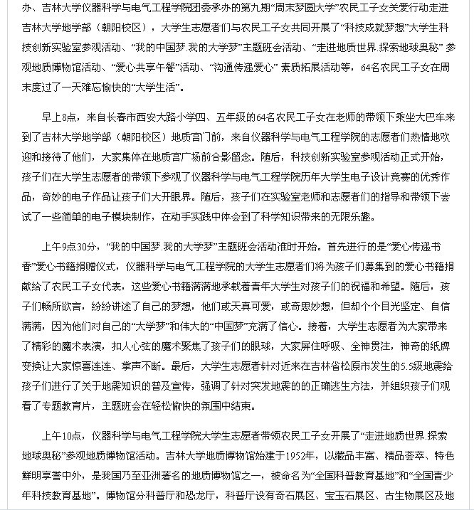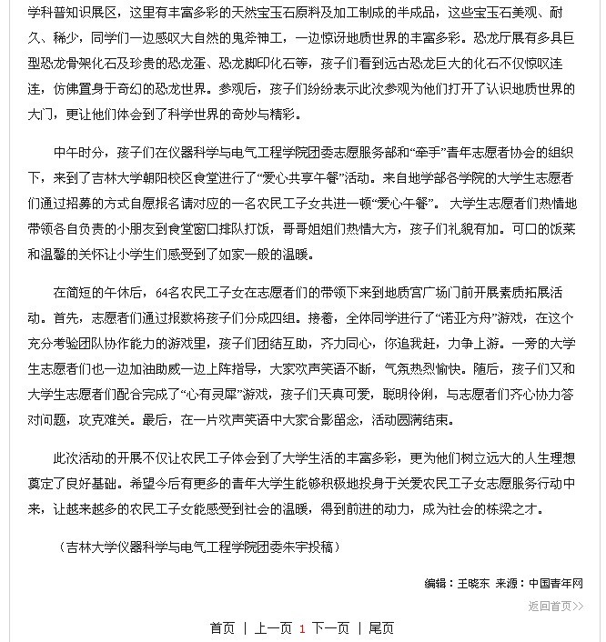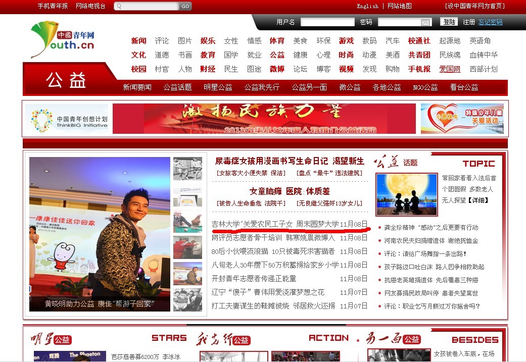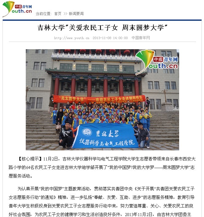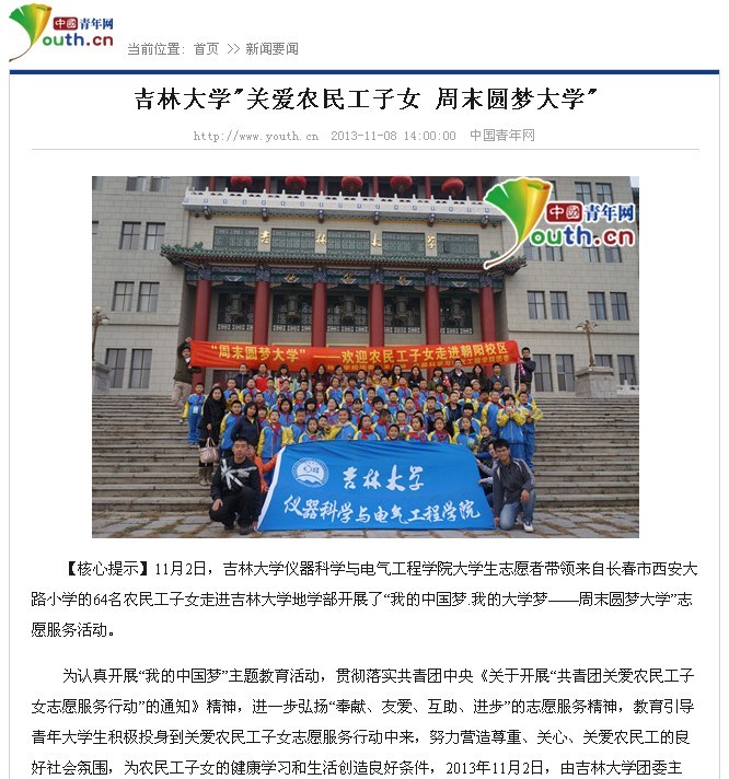 中国青年网《365英国上市公司“关爱农民工子女周末圆梦大学” 》