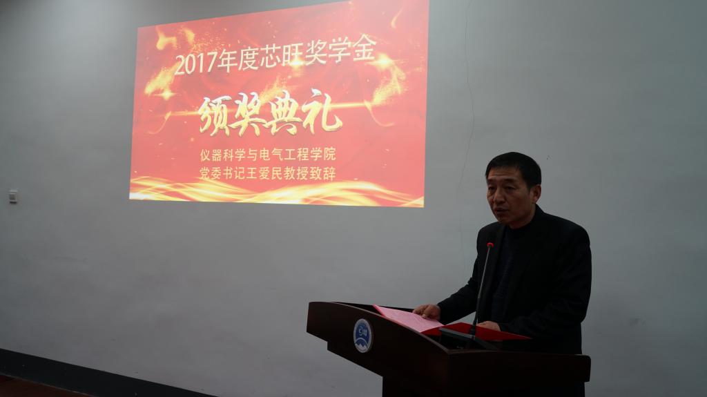 典礼最后,王爱民教授发表讲话,他首先对获奖员工表示祝贺、对捐赠企业表示感谢,而后结合十九大的教育内容,讲述了此奖学金设立的意义,并代表公司对同学们提出了感恩、理想、品德等方面的期望,希望他们弘扬仪电精神,为国家做贡献。在与会人员的高昂激情与热烈的掌声中,本次颁奖典礼落下帷幕。