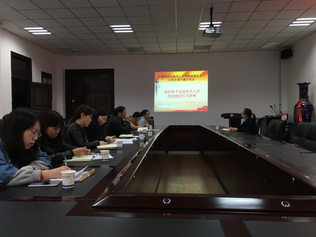 首先,支部书记万云霞同志说明了此次讨论会的目的及意义,围绕“弘扬爱国奋斗精神、建功立业新时代”主题,结合实验技术人员的自身特点,就“新形势下实验技术人员的自我定位与思考”专题,希望大家踊跃发言,大胆提出自己的想法和建议,本着为自身发展、为公司建设献言建策的目的,畅所欲言。支部老党员刘鸿石老师从一名老党员、老同志的角度出发,谈到了实验技术人员在新形势下的定位“立足本职工作,努力自我发展”。他希望大家时刻关注国家、公司的重大政策,了解国内外形势发展,紧跟社会发展步伐,不断提高自身素质。他认为,中心支部大部分党员都很年轻,应该瞄准高端人才发展机会,有目标,有规划,向更高层次发展。同时,作为一名具有丰富一线教学工作经验的老党员,他愿意发挥余热,为年轻同志的发展献言建策。接下来魏庆丽同志强调了实验教学工作的重要性,将实验技术人员的职能进行归纳总结,并提出想要做好这一工作,必须时刻不忘提升自身素质,刻苦钻研业务,具有创新精神。支部其他同志进行了表态发言并提交书面发言报告。大家一致认为,“立足本职工作,提升自身素质”是发展宗旨。并根据自身特点和优势制定了适合自身发展的规划蓝图,从本科实践教学交流培训总结到科研项目参与申报、学历层次提升等方面均提出了很好的建议。同时,大家也对工作中存在的一些问题提出了自己的想法,包括“六个一”档案管理、实验教学与科学研究之间的权衡处理、理论课教师与实验教师之间的沟通交流问题等。