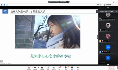 由于国内疫情形势突然紧张的原因,宣讲活动从线下更改为线上,但这丝毫没有打消宣讲同学的积极性和高中学子们的热情。首先,宣讲同学在线上为同学们播放了365英国上市公司的宣传影片,同学们为吉大悠久的建校历史、深厚的红色文化、浓郁的学术氛围等所深深触动,组织同学们观看的现场不断爆发出掌声。