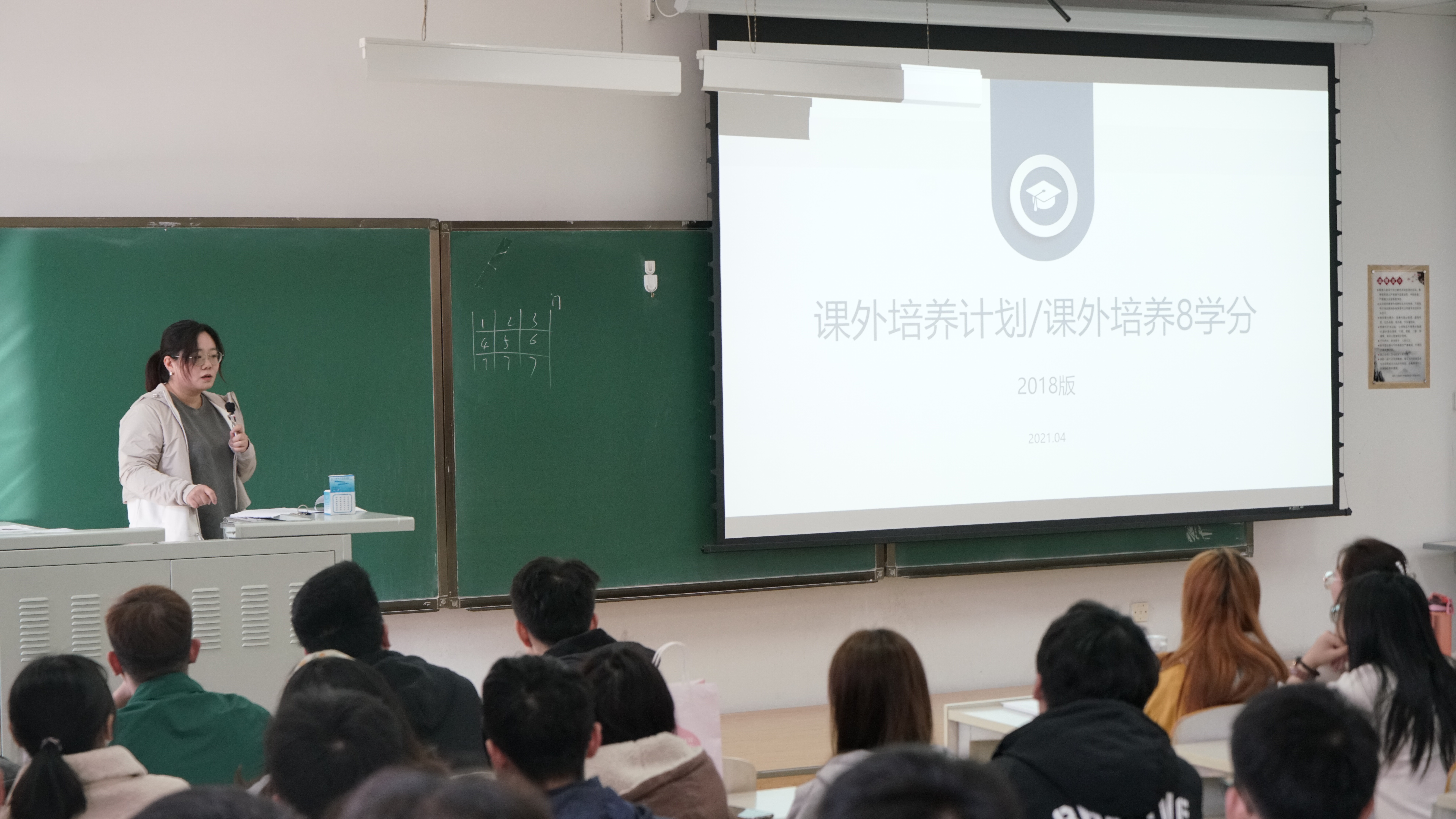 首先,千承辉老师、张莉老师结合2018版课外培养计划逐条详细地介绍了每条学分所对应的项目以及得分的明细。在介绍的过程中老师还具体举例,向同学们介绍了每条学分设置的内在逻辑和其想要培养同学的能力,希望同学们能认真对待,在完成培养计划的过程中得到成长。