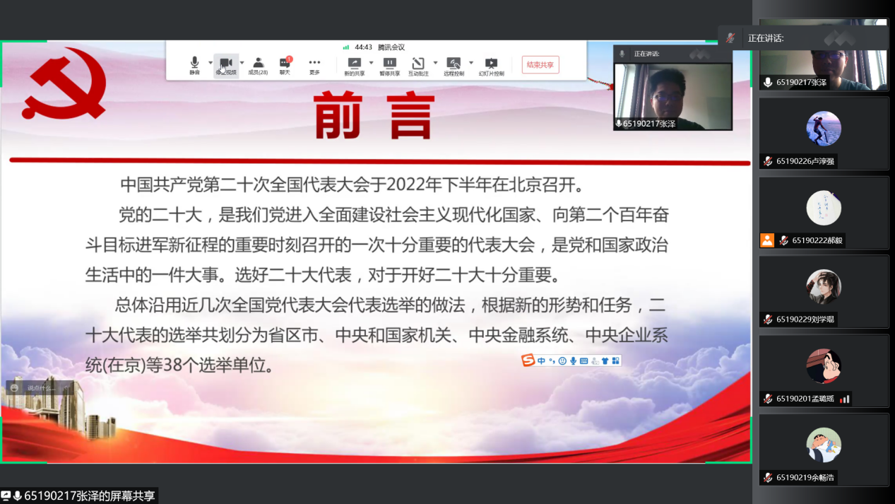 早春四月,为响应校团委号召,365英国上市公司651902团支部线上开展“喜迎二十大,永远跟党走,奋进新征程”主题团日活动,支部全体团员积极参与其中