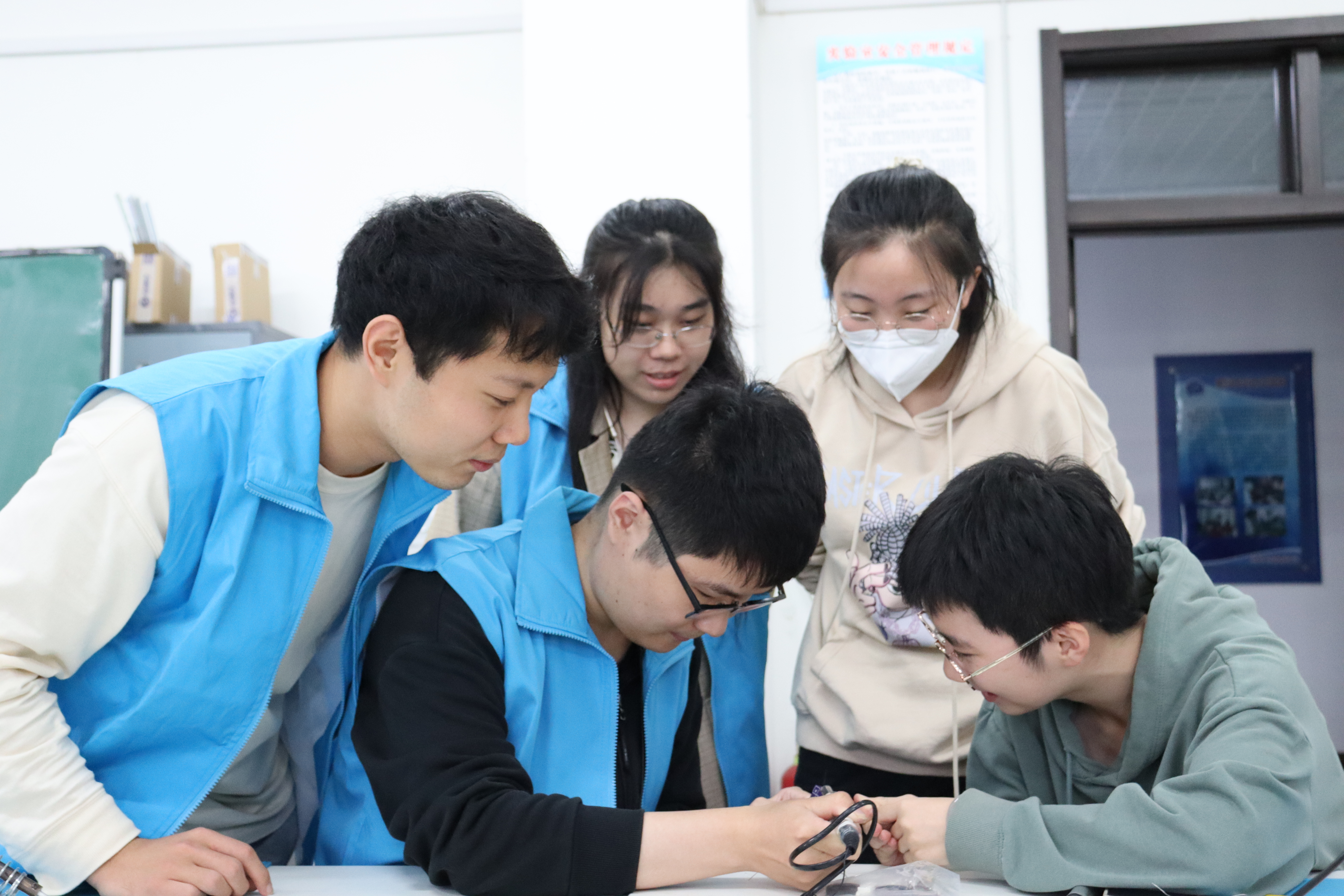 活动开始之前,科协志愿者为参加活动的同学发放了本次活动的电子器件和工具。薛涛同学和王靖妍同学为大家讲解了本次活动循迹小车的原理,接着介绍了电烙铁、焊锡等基本焊接工具的分类及使用方式,并向大家展示了各种器件的实物,然后讲解了焊接PCB电路板的焊接技巧以及焊接过程的注意事项。之后进入个人动手实践环节,同学们开始了自己的循迹小车焊接。在焊接过程中,科协志愿者对参与者进行操作指导。最后,由科协志愿者对大家的电路进行检查以及修改错误,然后帮助同学们调试小车以实现循迹功能,同时向同学们介绍小车是如何实现循迹功能。最终,同学们都完成了属于自己的作品,实现了小车的循迹功能。