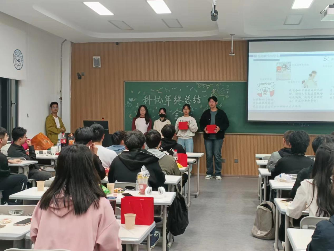 首先,会长向大家介绍了科协的基本情况和进程,使社团成员们再次了解社团的同时,也进一步增强了大家的归属感。接着,会长向大家展示了科协一年来举行的各项活动和成果,如保研/电赛分享会、华为高校行、文化驿站等,同时对下一年度的各项工作提出了期望。随后,为社团努力工作了一年的部长和优秀成员们,颁发了精美的礼品并合影留念。接下来,刘梦爽学姐组织大家进行了“敲7”“纸杯弹珠”“你画我猜”的趣味游戏,做到了全员参与,通过分组积分的形式比拼,还有的成员接受“惩罚”,上台讲述趣事,大家在欢声笑语中增进了彼此间的友谊,也无疑加深了成员间的了解与交流。最后,每位成员在黑板上签下了自己的名字,绘成了属于科协的独家记忆。
