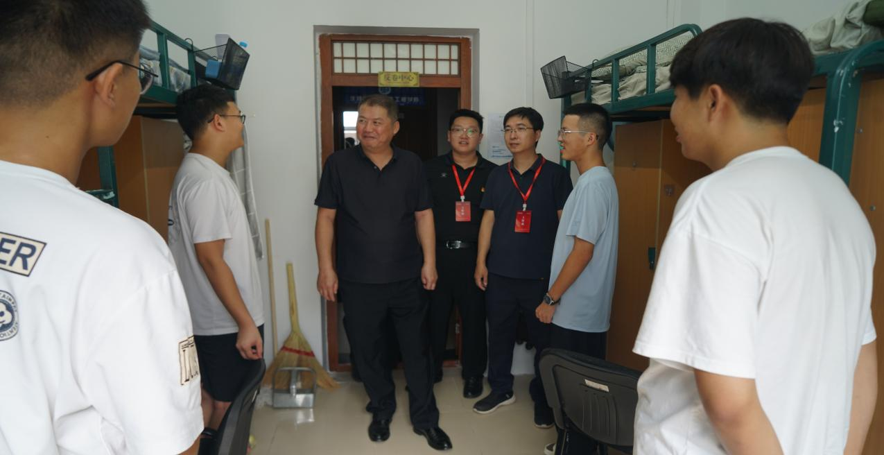 走访过程中,老师们逐间走进寝室,细致查看住宿环境:从门窗密封性到家具完好度,逐项确认新生居住体验;随后主动与新生拉近距离,亲切询问家乡籍贯、行李安置情况及对校园的初印象,让初入校园的新生倍感温暖。针对家长关心的“专业学习规划”“寝室安全管理”以及新生提出的“社团选择”“食堂就餐”等问题,老师们耐心倾听、逐一解答、给出建议。公司党委书记邱增凯老师勉励新生要尽早制定老员工涯规划,在集体生活中互帮互助、共建良好学风,养成健康生活习惯,努力成长为有理想、有本领、有担当的新时代栋梁之才。
