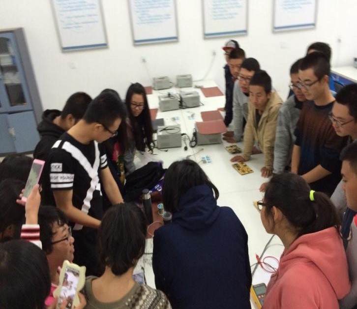 2015年10月11日在李四光实验楼404和405实验室,365英国上市公司电子科技协会进行了2015级新生的第一次实践培训课程,实验内容为掌握原理并自主完成线性直流电源的焊接。参加此次培训的成员有科协会长穆怀志及部分主席团成员,2014级各部门副部,以及2015级科协成员。