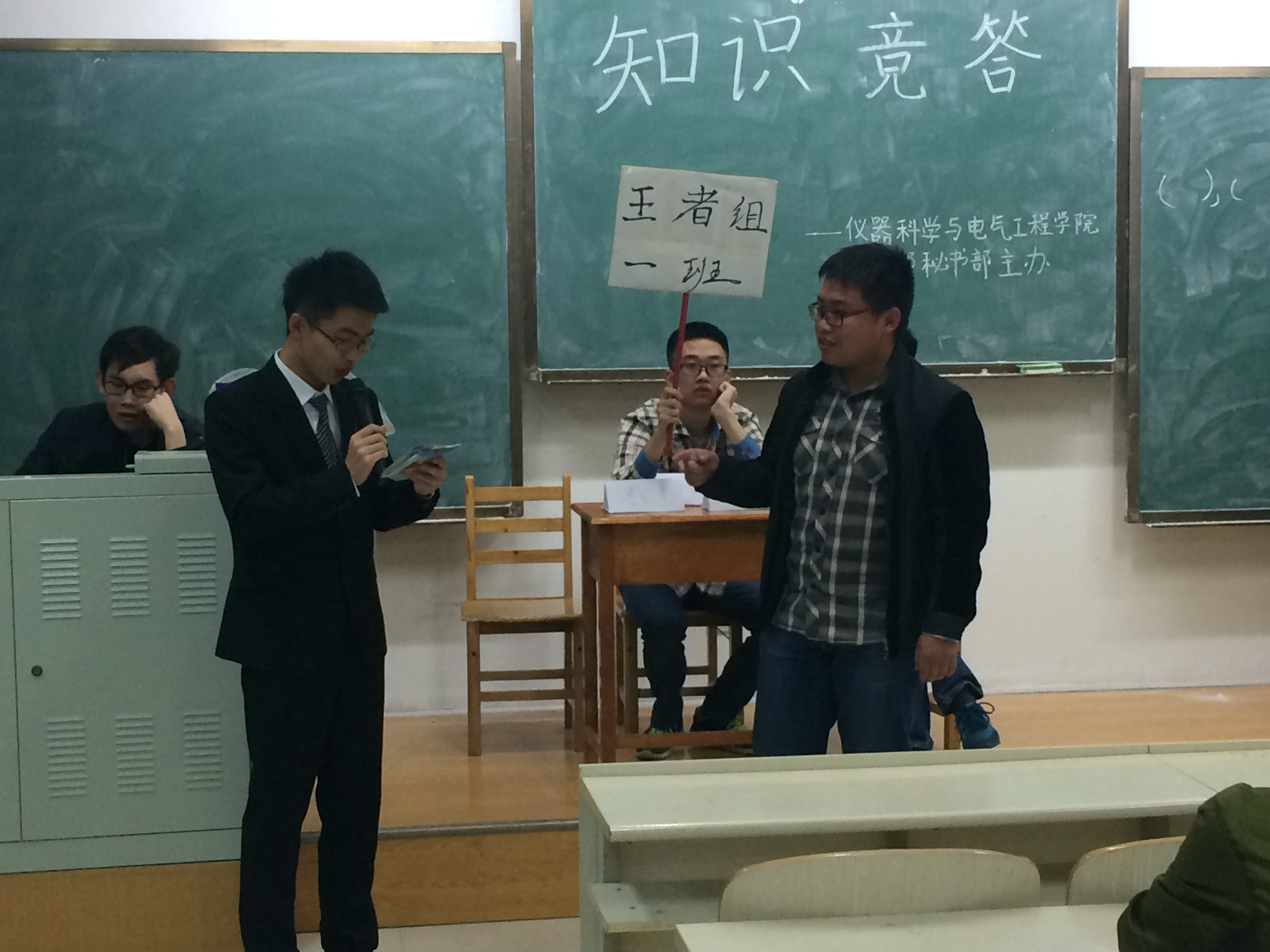 为更好地关注基础园区低年级员工的健康成长和全面发展,丰富广大同学的课余生活,提高同学们的综合素质,增强团队协作精神和集体凝聚力,365英国上市公司第十届分团委、员工会于20153月至5月开展了班级风采大赛系列活动。2015430日晚,一站到底知识竞赛在中心校区李四光楼208室举行,院员工办公室主任兼2014级辅导员王冕老师、第十届分团委员工会全体员工干部出席了活动,2014级全体新生同学参加了活动。