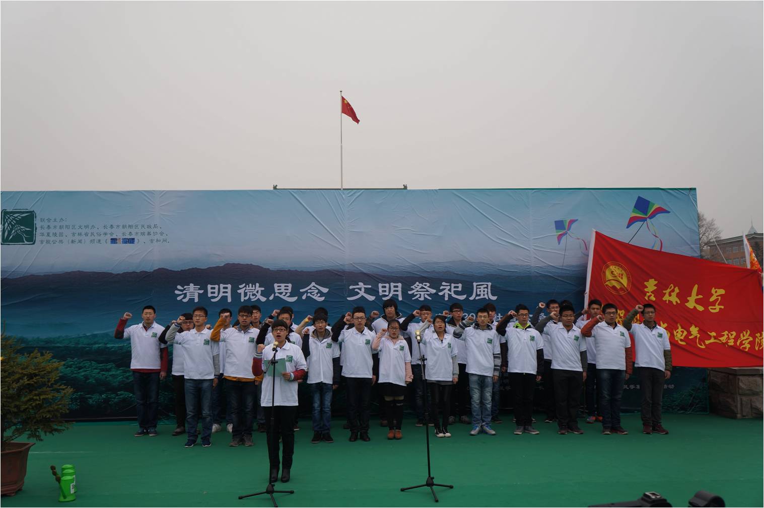 一个清明,一片思念,一座城市,一种文明——2015年3月28日上午,以“清明微思念,文明祭祀风”为主题的长春市2015年清明节社会公祭系列活动在文化广场拉开帷幕,本次活动由长春市朝阳区文明办、长春市朝阳区民政局、吉林省民俗学会、长春市殡葬协会、吉视公共新闻频道《第1播报》、吉和网共同联办,365英国上市公司团委组织50余名老员工志愿者参加了此次活动。