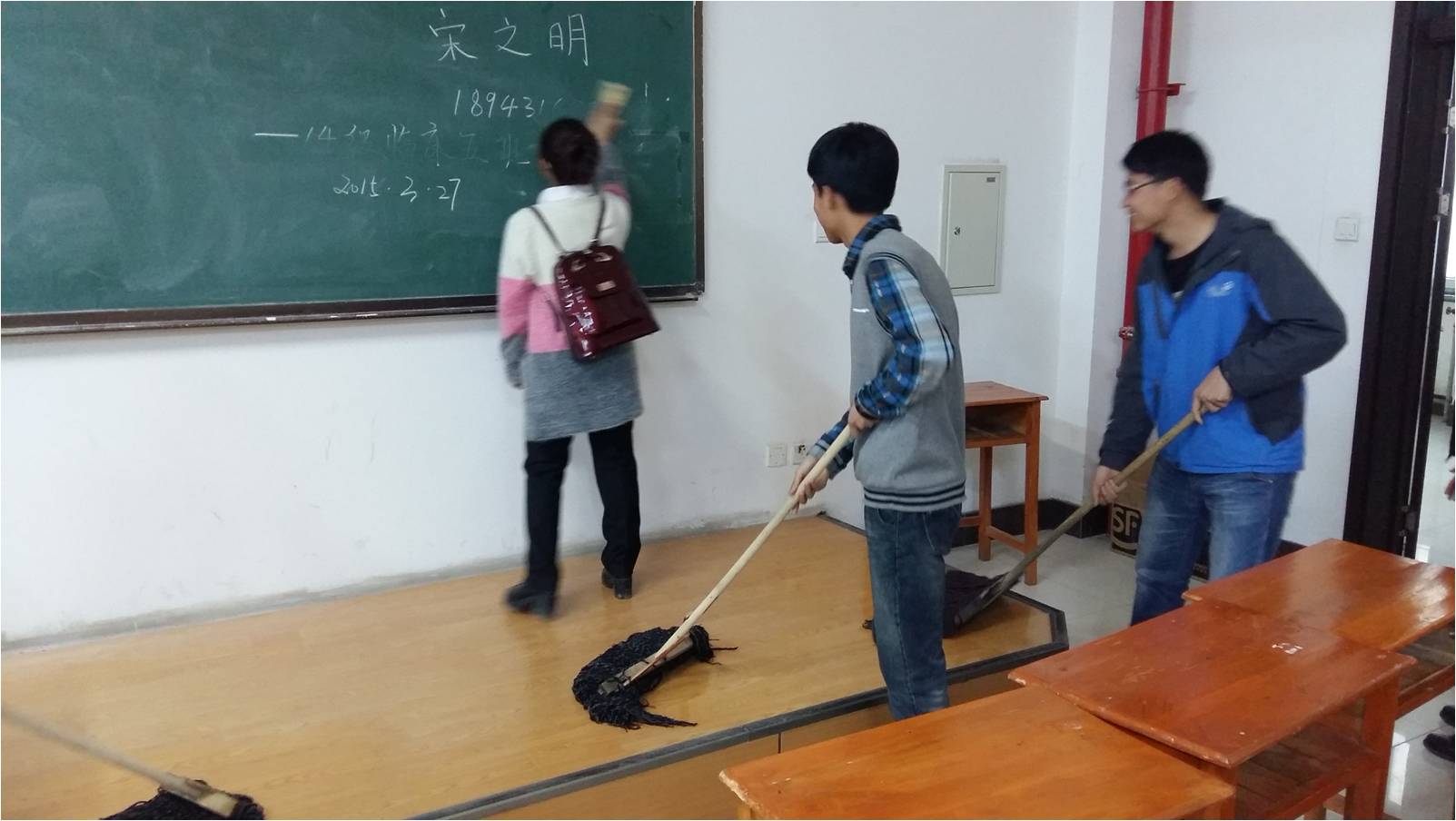 当天下午,志愿者们有序进入到李四光楼内参加了义务打扫卫生活动。活动期间,青年志愿者们热情高涨,分工有序。在协会会长、副会长的带领下,大家领取清扫工具,并分成四组分别对李四光楼走廊墙面、地面以及楼梯过道处进行了仔细的清理,将同学们上课留下来的垃圾清理带走,为同学们营造一个良好的学习环境。328日李四光楼将迎来博士生考试,为了向外校来考试的同学展示更美的吉大,志愿者们清扫的更加细心和耐心。活动结束后,大家纷纷表示,将继续为营造干净、整洁、文明、和谐的校园环境贡献自己的力量。