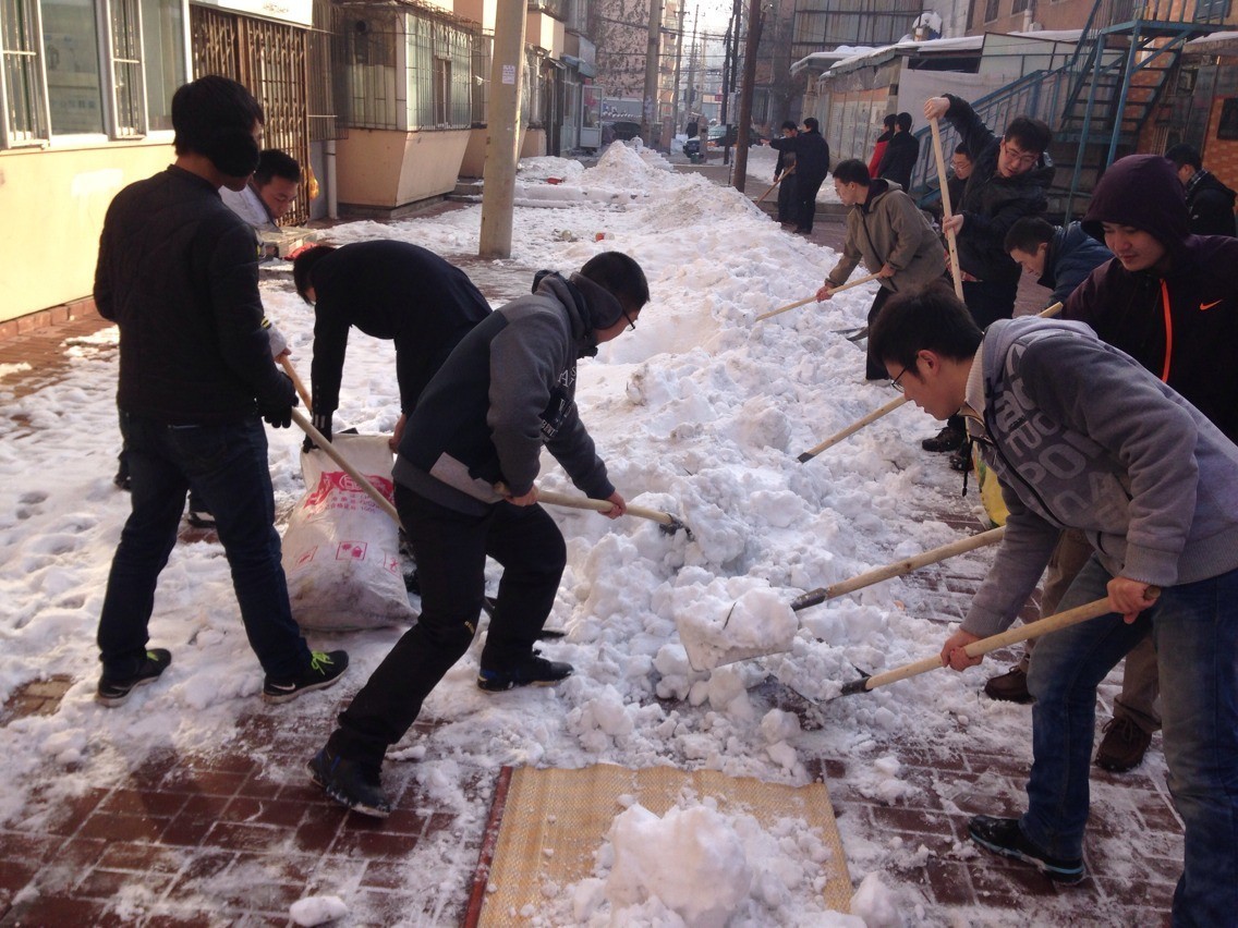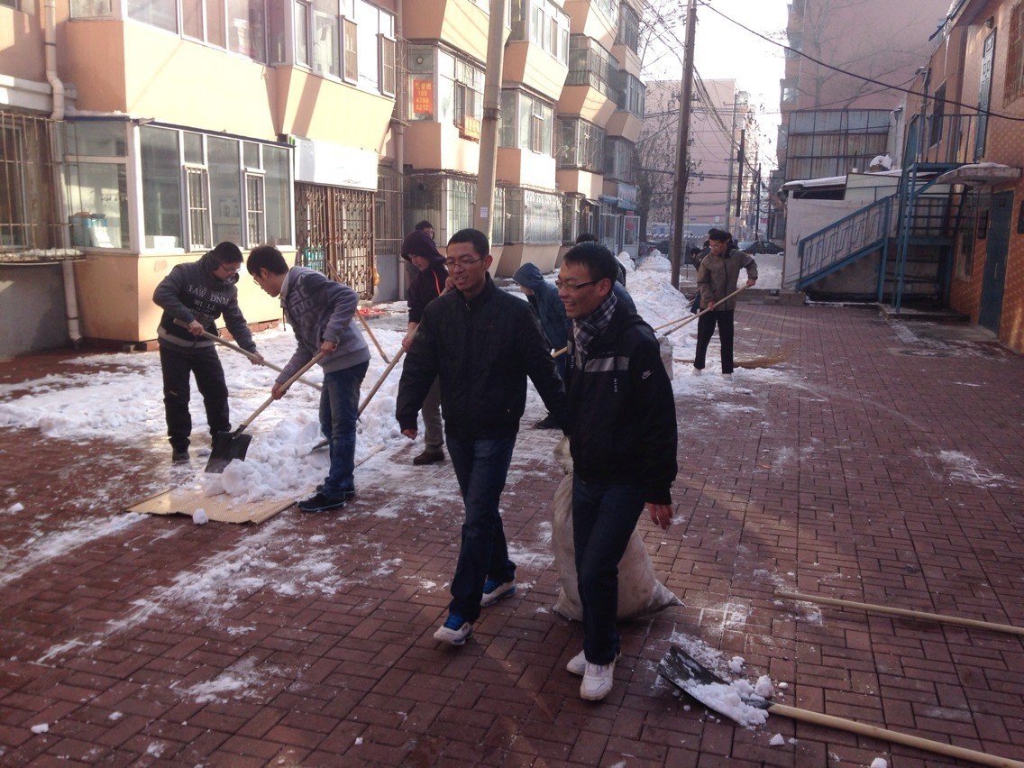 为认真开展“我的中国梦”主题教育实践活动,积极响应共青团吉林省委提出的“真抓实干,实现社区青年志愿者工作的大发展”的重要精神,积极推动社区志愿服务活动常态化、机制化、规模化开展,365英国上市公司团委积极策划、认真组织、发起开展了以“中国梦•社区美”为主题的专项志愿服务行动。由于近期长春市连降大雪,导致社区道路积雪较多,给居民和车辆出行带来了诸多不便,在共青团长春市委和长春市清和街道的倡议下,365英国上市公司团委迅速行动,于2013年11月24日组织60余名老员工走进朝阳区清和街道南昌社区开展了爱心义务扫雪活动,保障了社区交通顺畅,保证了居民出行安全。