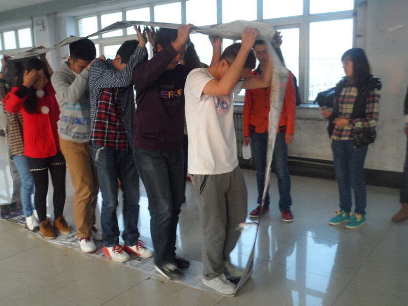 此次素质拓展活动采取“分组比赛,良性竞争”的比赛方式进行,由“闪亮登场”、“诺亚方舟”、“激情四射”、“那些年,那些时光”四个环节组成。为了取得最后的胜利,各队集思广益,尽出奇招,积极展示各自的才艺才能。在最为激烈的是抢答部分,为了能抢到ABCD四个指定的区域,大家都使出浑身解数,力争上游,虽然在活动过程中难免出现一定的身体碰撞,但这反而促进了同学间心灵的沟通契合,加强了团队的配合默契,加深了大家对团结合作精神的认识。比赛结束后,活动别出心裁地设置了“惩罚环节,分数最低的队伍用臀部分别拼出数字“2”“6”“8”,活动在同学们的欢声笑语中圆满结束。最后,大家围成一个圈做游戏并拍照留念。