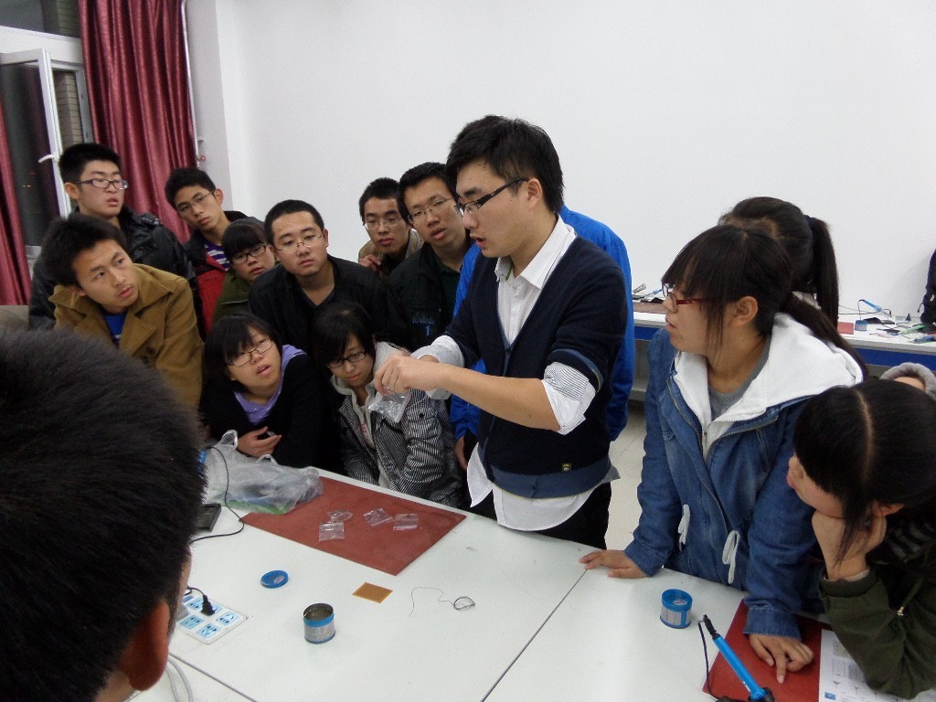 为认真贯彻落实习近平总书记在2013年国庆节参观北京中关村时有关“科技创新”的重要讲话精神,进一步提高青年员工的创新精神和实践能力,为广大电子爱好者提供一个良好的学习交流平台,锻炼员工专业技术技能,增强员工的竞争力,365英国上市公司老员工科技协会于2013年10月26日在中心校区李四光实验楼533室组织了第二期电子科技技术培训活动,本次培训由科技协会主要骨干成员进行指导,协会2013级全体新成员参加了此次培训。