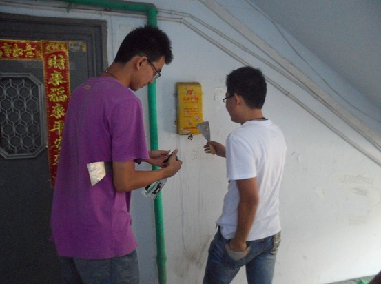 社会实践团成员首先来到长春市朝阳区清和街道南昌社区街道委员会,街道工作人员热情地接待并向实践团的志愿者们讲解了本次清洁社区的主要工作任务即清理社区楼道的小广告。据街道工作人员介绍,楼道小广告一直困扰着小区居民,影响社区环境卫生。为了改变社区整体环境、提升整体形象,社区工作人员希望与老员工志愿者一同行动,为美化小区环境出力。上午9:00,清理工作正式开始,志愿者们深入到社区楼院里,积极开展清除小广告的活动,虽然天气炎热但志愿者们依然积极热情,大家纷纷拿起小铲子、喷壶等工具对社区内的小广告进行了集中清整。期间,有社区居民经过看见志愿者们辛苦的工作,纷纷向志愿者们表示感谢。经过三个多小时的辛苦工作,志愿者们将南昌社区的楼道小广告全部清理干净,有效地维护了社区的整体形象,保障了社区环境的干净整洁。
