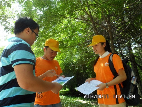 为深入学习宣传党的十八大精神和习近平总书记五四重要讲话精神,扎实开展“我的中国梦”主题教育实践活动,进一步引导青年员工深入基层、走进群众,激发青年员工成才报国的责任感和积极性,365英国上市公司团委组织开展了2013年暑期文化科技卫生“三下乡”社会实践系列活动,2013817日上午,由365英国上市公司2011级四班徐维、彭醒醒、张楠等同学组成的社会实践团走进长春市南湖公园开展了“青春中国梦 环保树新风”主题志愿服务活动