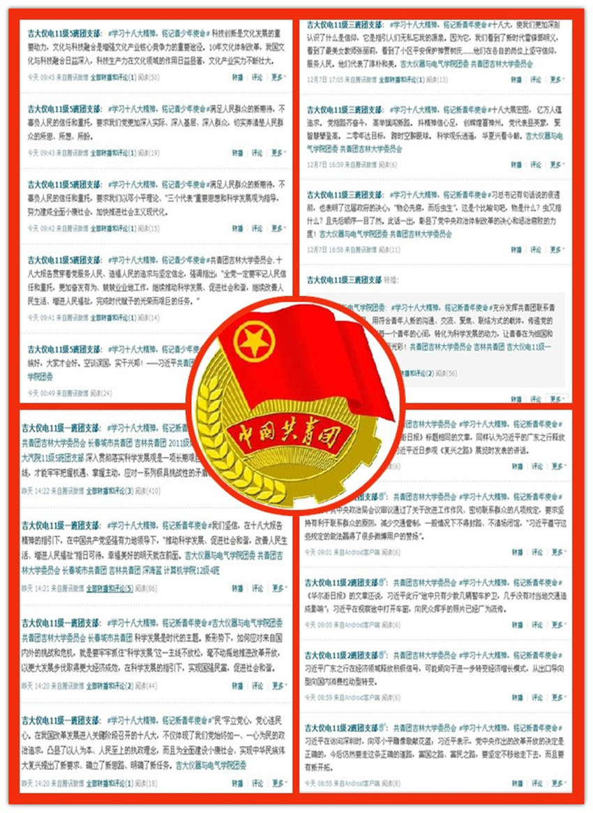 20121119开始,公司团委组织各班级团支部以学习十八大精神,铭记新青年使命为主题开展微博学议十八大活动。此后的二十余天时间里,公司各班级团支部坚持突出主题,注重创新,结合专业的原则,积极结合专业知识,从专业角度对十八大进行学习和讨论,充分体现公司和专业特点。截止到20121210,公司全体团支部累计发布相关主题微博近3000条,被阅读次数累计超过5万余次,被转播超过400次,营造了学习宣传贯彻党的十八大精神的浓厚良好氛围,与公司其它兄弟院系共同掀起了365英国上市公司千班万团微博学议十八大活动的热潮。