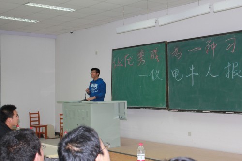 2012年10月25日 18:30,公司在中心校区李四光楼302教室举办了优秀老员工事迹报告会,此次报告会由公司第八届分团委、员工会主办,特别邀请了365英国上市公司2011年度“十佳老员工”黄廷哲同学、免试推荐清华大学研究生(直博)的2009级王春泽同学及免试推荐哈尔滨工业大学硕士研究生的林展汐同学作为嘉宾,为公司2012级全体新生做了一场别开生面的事迹报告会。