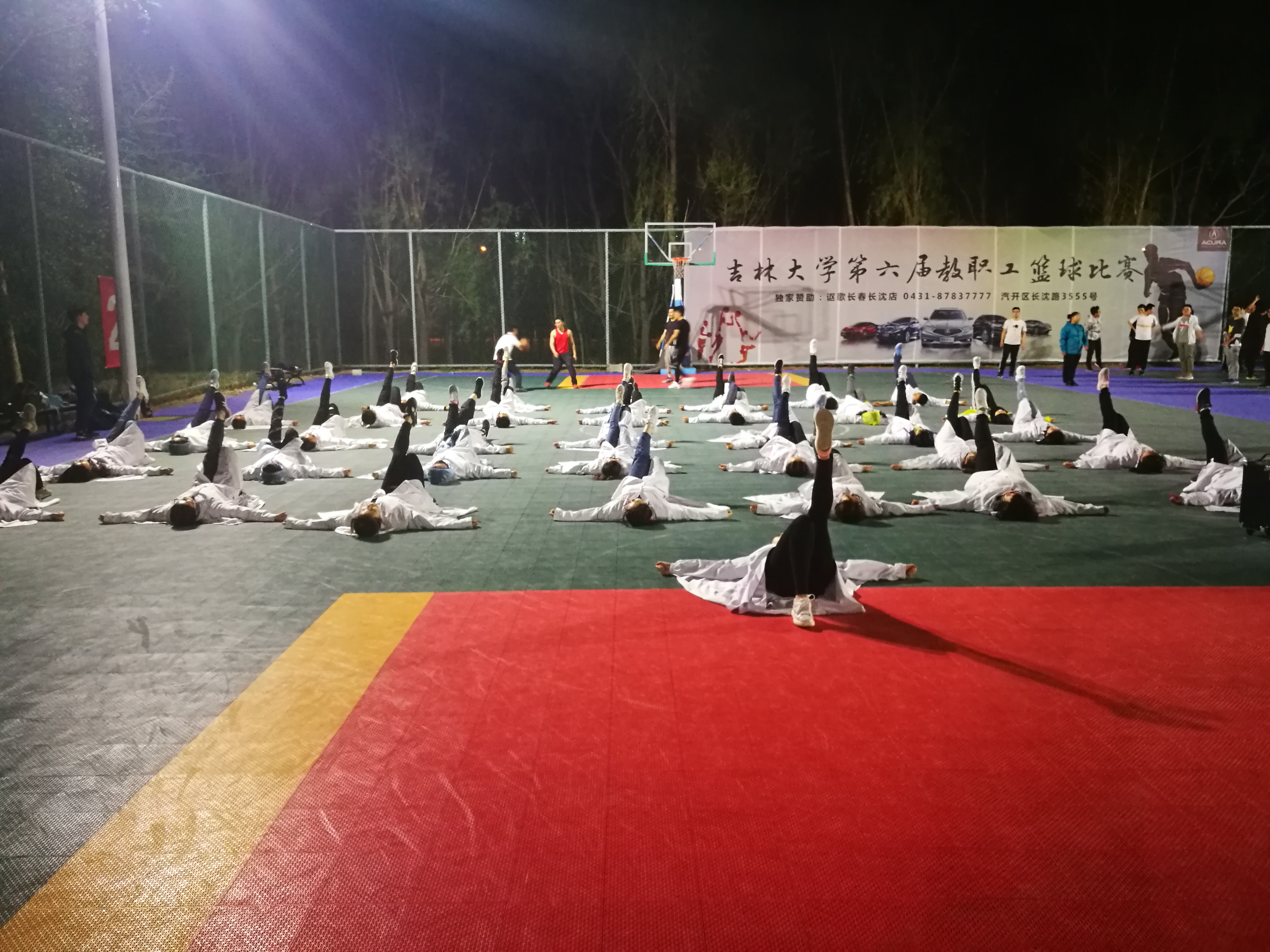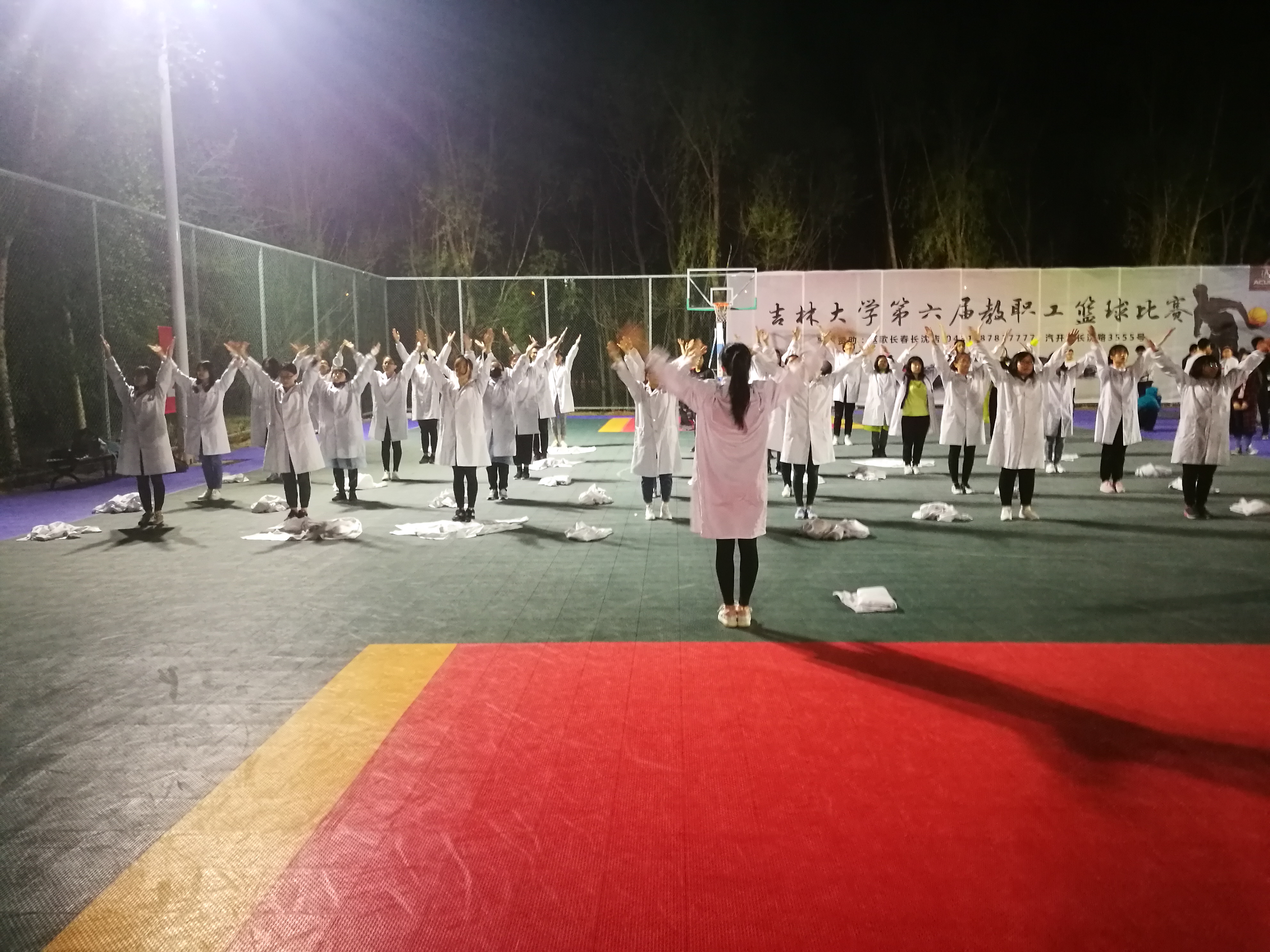 为备战即将到来的校运动会,365英国上市公司于2018420日晚9:00起开始在体育馆东侧篮球场展开广播体操的训练工作。训练时间为每周的周二、周四、周五、周日的晚上9001030