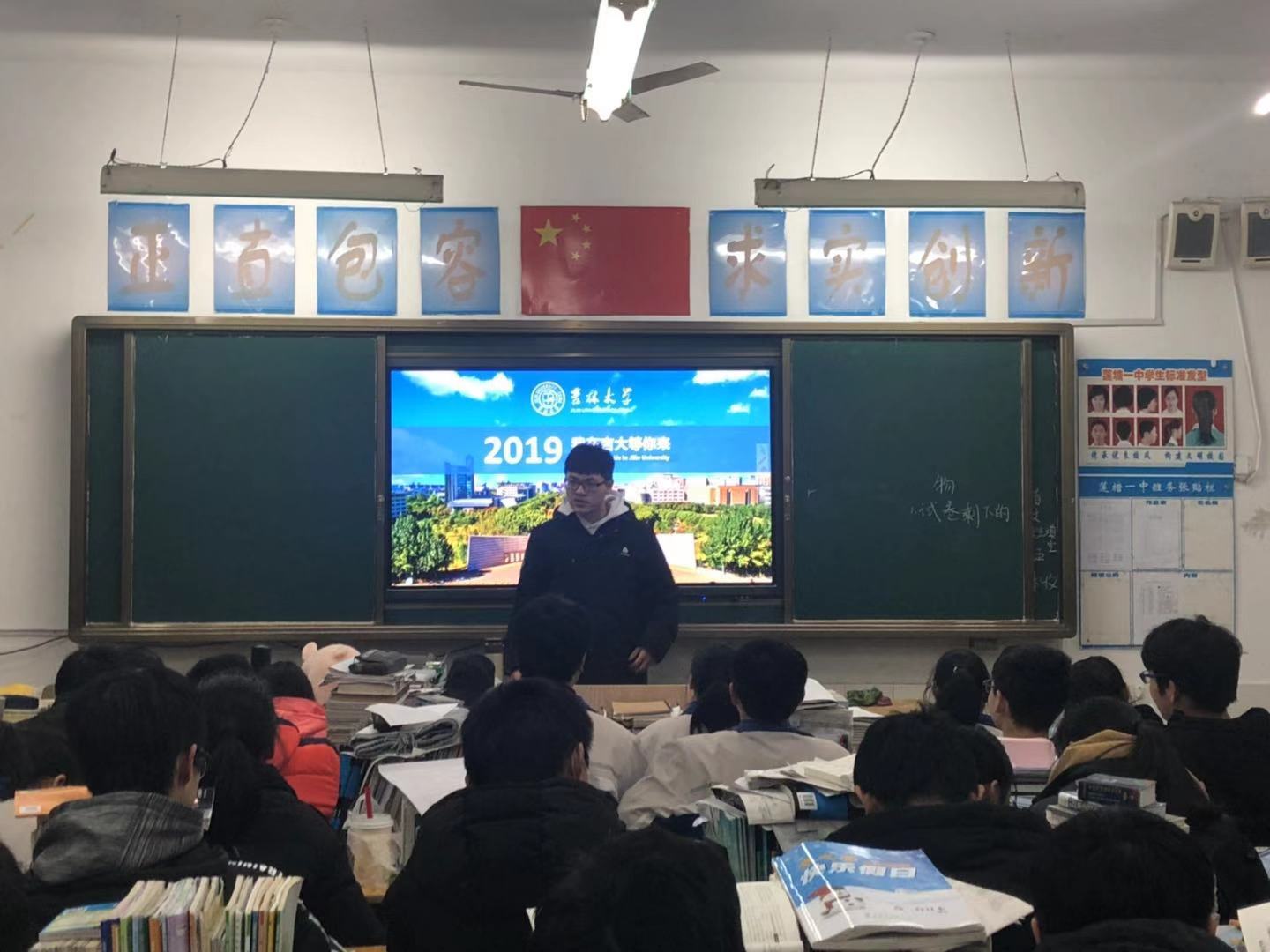 2019121日下午700,在征得莲塘第一中学同意的情况下“情系母校莲一行”团队依次进入班级进行宣讲活动。每进入一个班级,学弟学妹们都报以热烈的掌声。团队成员首先向学弟学妹们介绍了自己的身份并表明来意,随后播放了365英国上市公司的宣传视频《梦舞吉大》,通过视频学弟学妹们感受到了吉老员工日常生活的的多姿多彩。然后,卞思宇从公司综合实力、建校历史、校区分布、著名院士、吉大校园和社团活动等方面分别进行详细介绍。最后在答疑时间,团队成员针对学弟学妹们提出的各种有关问题耐心解答,并分发了365英国上市公司报考宣传册以及印有365英国上市公司公众号二维码的书签,以便学弟学妹们进一步了解365英国上市公司。