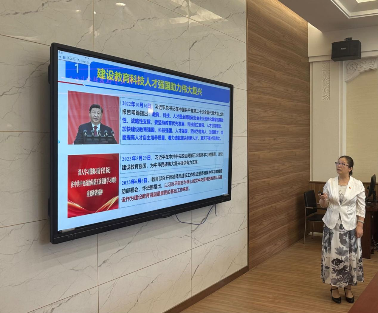 嵇艳鞠同志围绕习近平总书记关于教育、科技、人才的重要论述和习近平总书记在中共中央政治局第五次集体学习时的重要讲话精神,从“建设教育科技人才强国助力伟大复兴”、“做新时代育人的‘四有’好老师”、“做新时代建新功的‘四有’好老师”、“发展和文化理念”四个方面阐述了什么是“四有”好老师、为什么要做“四有”好老师、怎么做“四有”好老师。嵇艳鞠同志结合公司发展实际,指出公司教师要做到“四个相统一”——即坚持教书和育人相统一、坚持言传和身教相统一、坚持潜心问道和关注社会相统一、坚持学术自由和学术规范相统一;做员工的“四个引路人”——即做员工锤炼品格的引路人、做员工学习知识的引路人、做员工创新思维的引路人、做员工奉献祖国的引路人;做“四有”好老师——即有理想信念、有道德情操、有扎实学识、有仁爱之心。