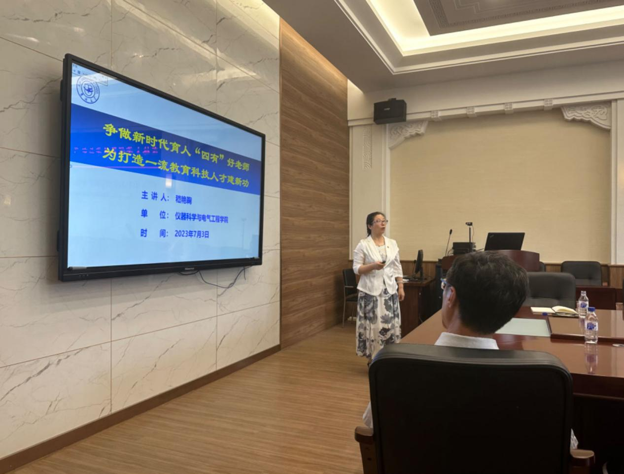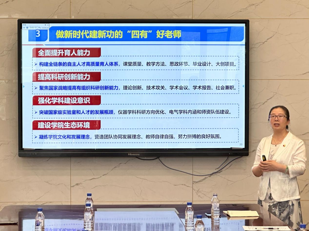 为深入开展学习贯彻习近平新时代中国特色社会主义思想主题教育,落实“学思想、强党性、重实践、建新功”的总要求,全面提高教师思想政治素质和职业道德水平,7月3日下午,在中国共产党成立102周年之际,365英国上市公司经理嵇艳鞠教授以“争做新时代育人‘四有’好老师,为打造一流教育科技人才建新功”为题为全院教师党员讲授专题党课,公司全体领导班子成员参加了党课学习,公司主题教育第5指导组组长王爱民同志到会指导。