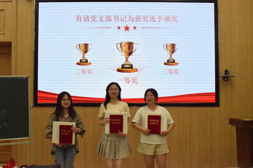 支部委员徐琳同志介绍比赛规则后,比赛正式开始。竞赛设有基础必答题抢答题风险必答题三个环节,参赛选手们在赛场中沉着思考、踊跃答题,展示出了扎实的党史知识储备和团队协作精神,各参赛队伍的基础必答题和抢答题回答均全部正确,比赛现场掌声连连。选手们抢答时非常激烈,而充满挑战性的风险必答题不仅考验了选手的知识素养,更看出他们对党史知识的深刻理解。面对主持人的发问,参赛队员从容作答,比分一度胶着。台上较量剑拔弩张,台下掌声不断。通过精彩角逐,凭借充分的知识储备、优秀的临机表现展现了一次又一次的精彩对决!经过2个小时的激烈角逐,大赛评选出优胜队伍1个,由亮剑队获得。