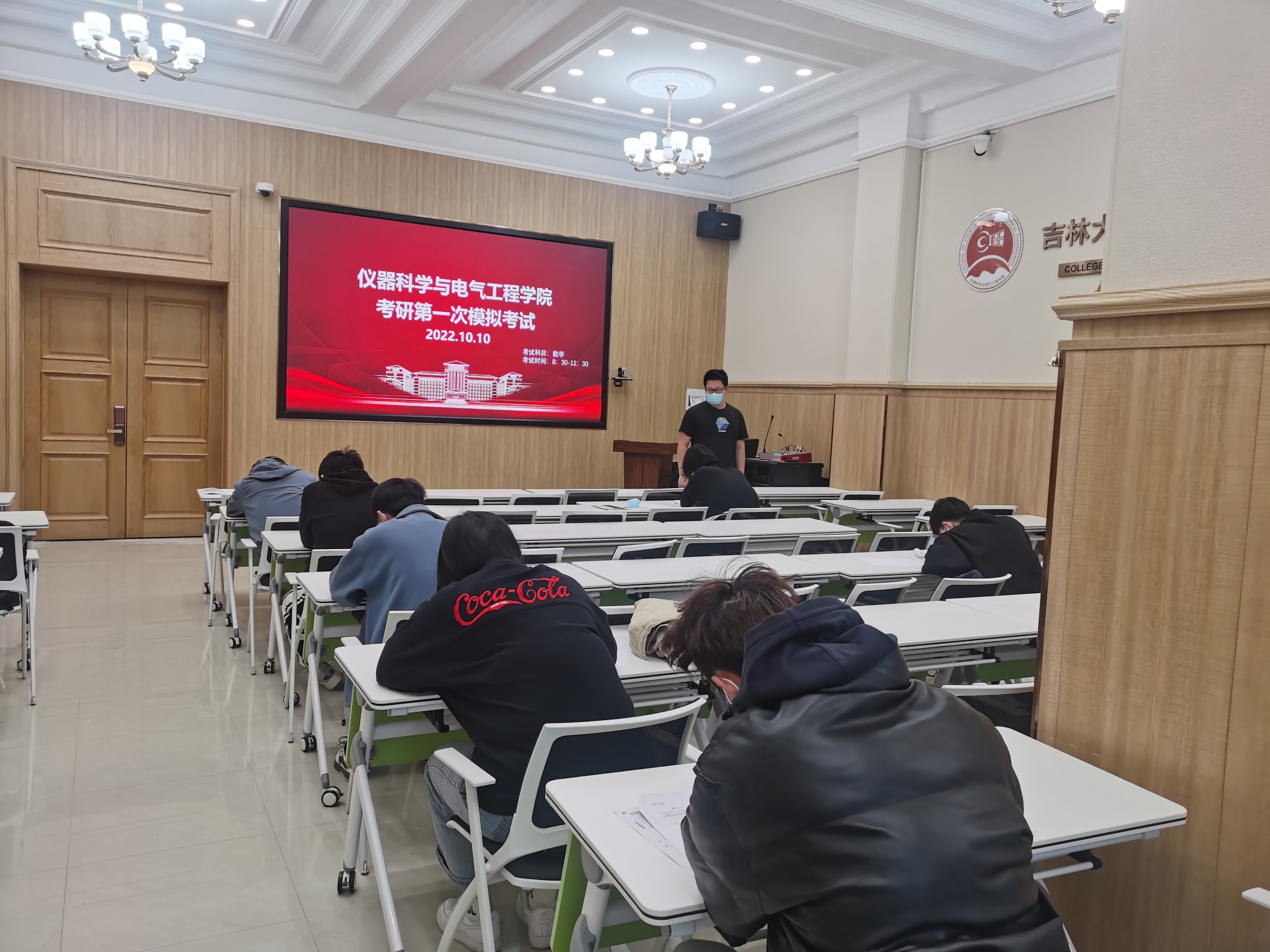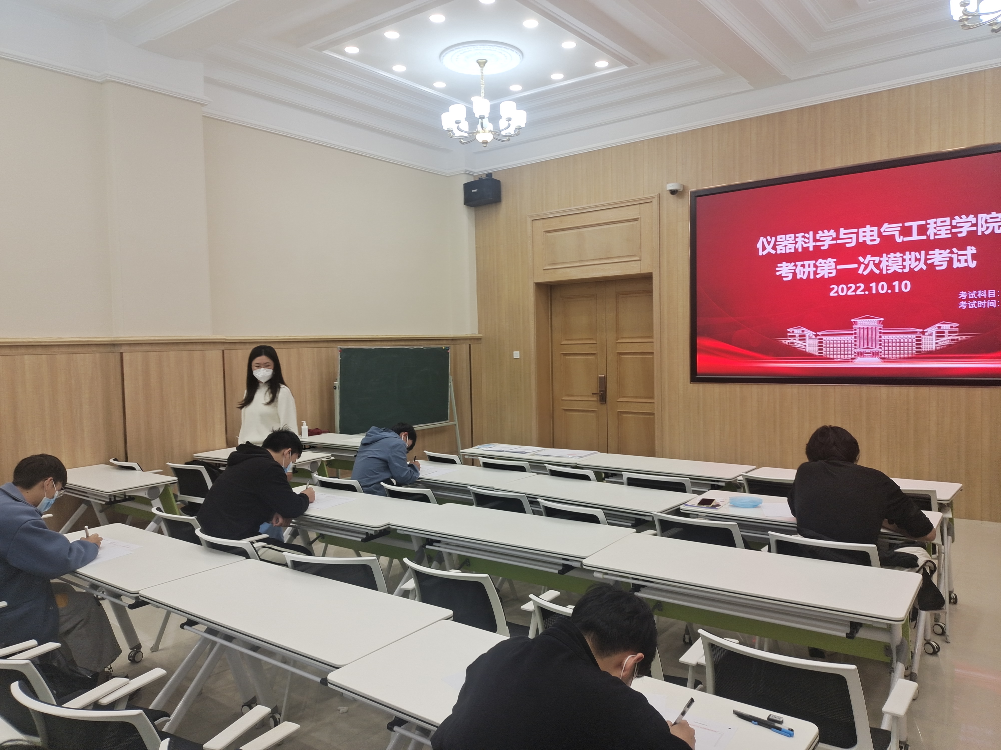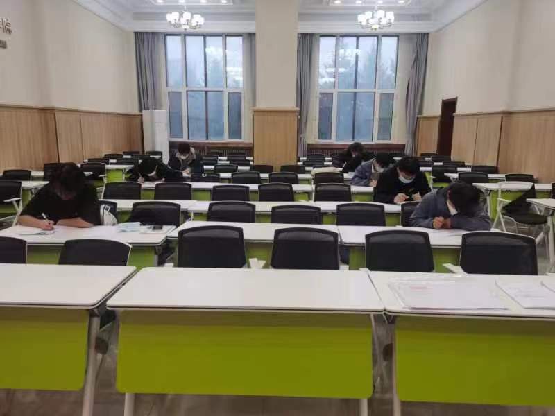 早8:30,2019级本科生辅导员马姗姗、博士兼职辅导员史博日来到模拟考场现场,向同学们解读模拟考试要求后,考试正式开始。为了让考研的同学们更好的了解和体验考试,熟悉题型结构和考场氛围,本次模拟考试全程安排监考人员,考试时间、试卷和答题卡样式、答题填涂规则等均严格按照研究生考试要求进行,旨在为同学们提供了一个自我检测的机会,让同学们更全面地了解到自己在学习过程中的优势与不足,同学们在拿到试卷后迅速进入答题状态,并以此次模拟考试为契机,找出差距和不足。