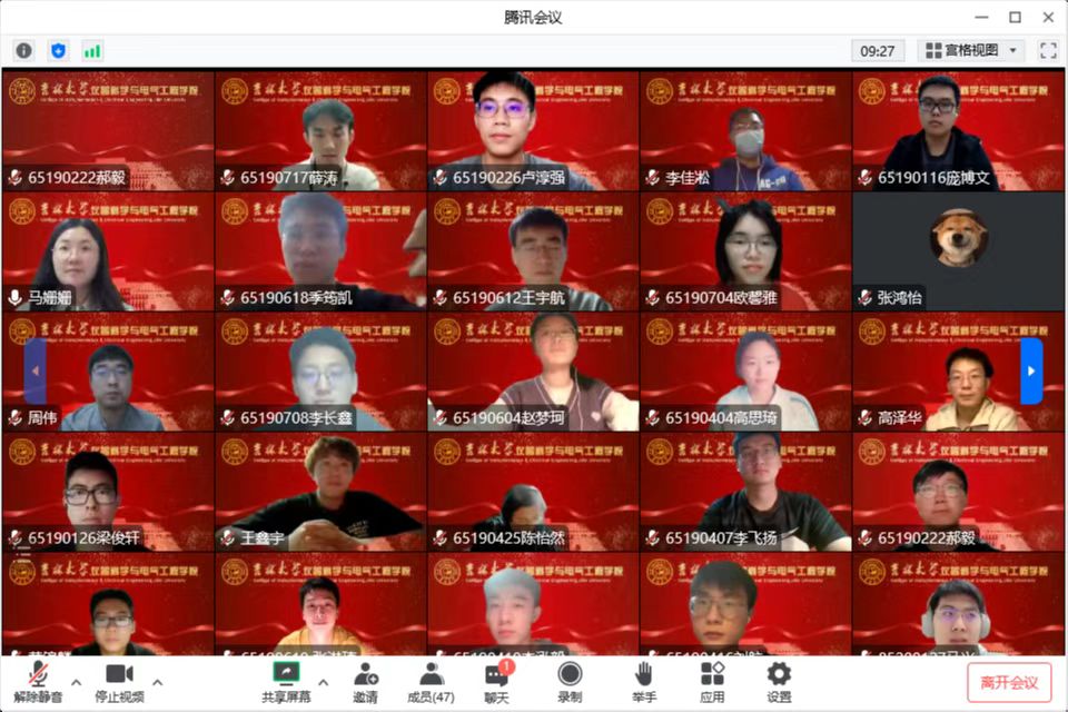 大会直播结束后,驻校教师周伟、马姗姗与本科生党员在腾讯会议交流心得、分享感悟,全体党员心情澎湃、备受鼓舞,纷纷表示要时刻更新自己的知识储备,锻炼自己的能力,争做踏实肯干,吃苦耐劳,善作善成,做有理想、敢担当、能吃苦、肯奋斗的新时代好青年。青年强,则国家强,当代中国青年生逢其时,施展才干的舞台无比广阔,实现梦想的前景无比光明,与会同学一致认为,要在思想上政治上行动上同以习近平同志为核心的党中央保持高度一致,高举中国特色社会主义伟大旗帜,深刻领会新时代中国特色社会主义思想的精神实质和丰富内涵,踔厉奋发、勇毅前行。