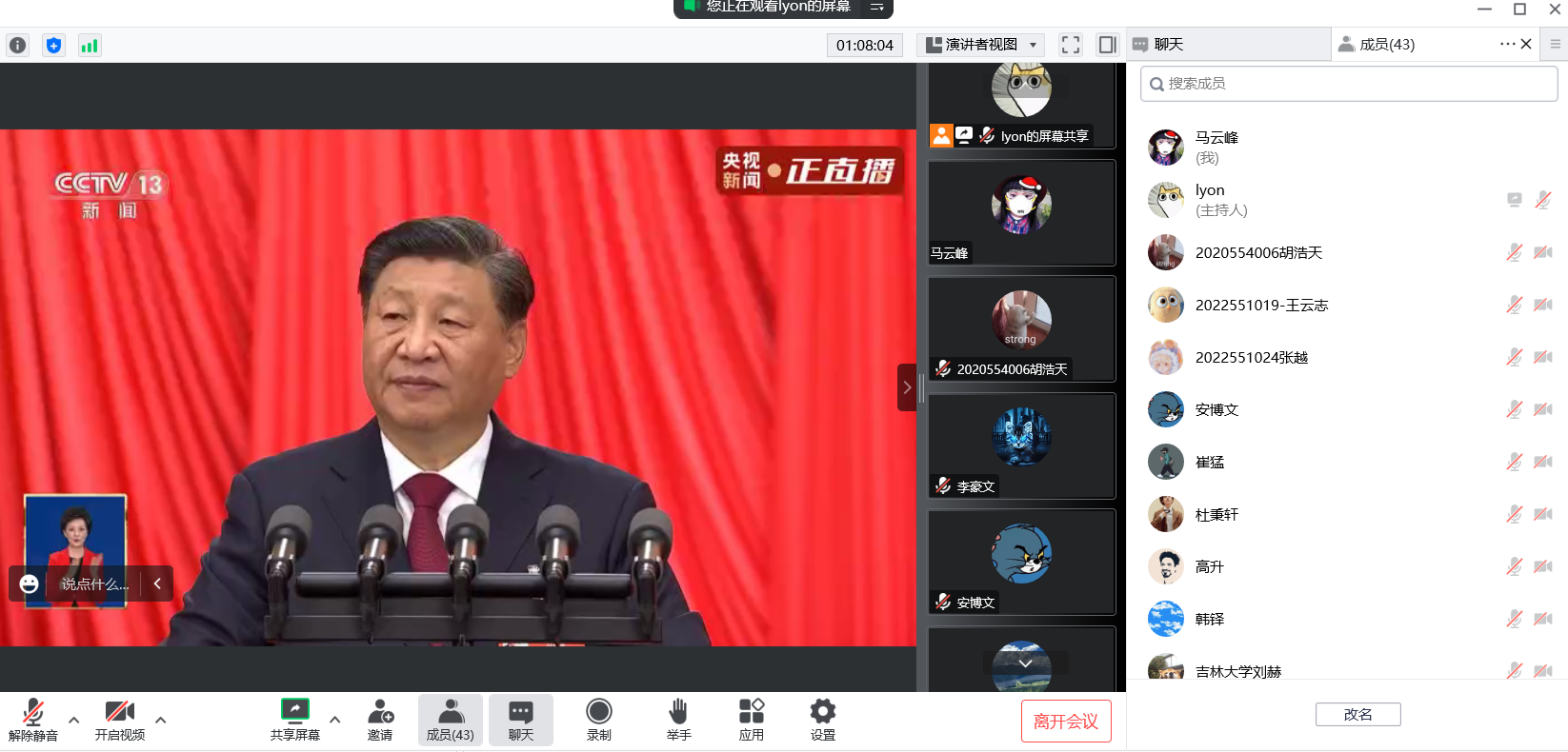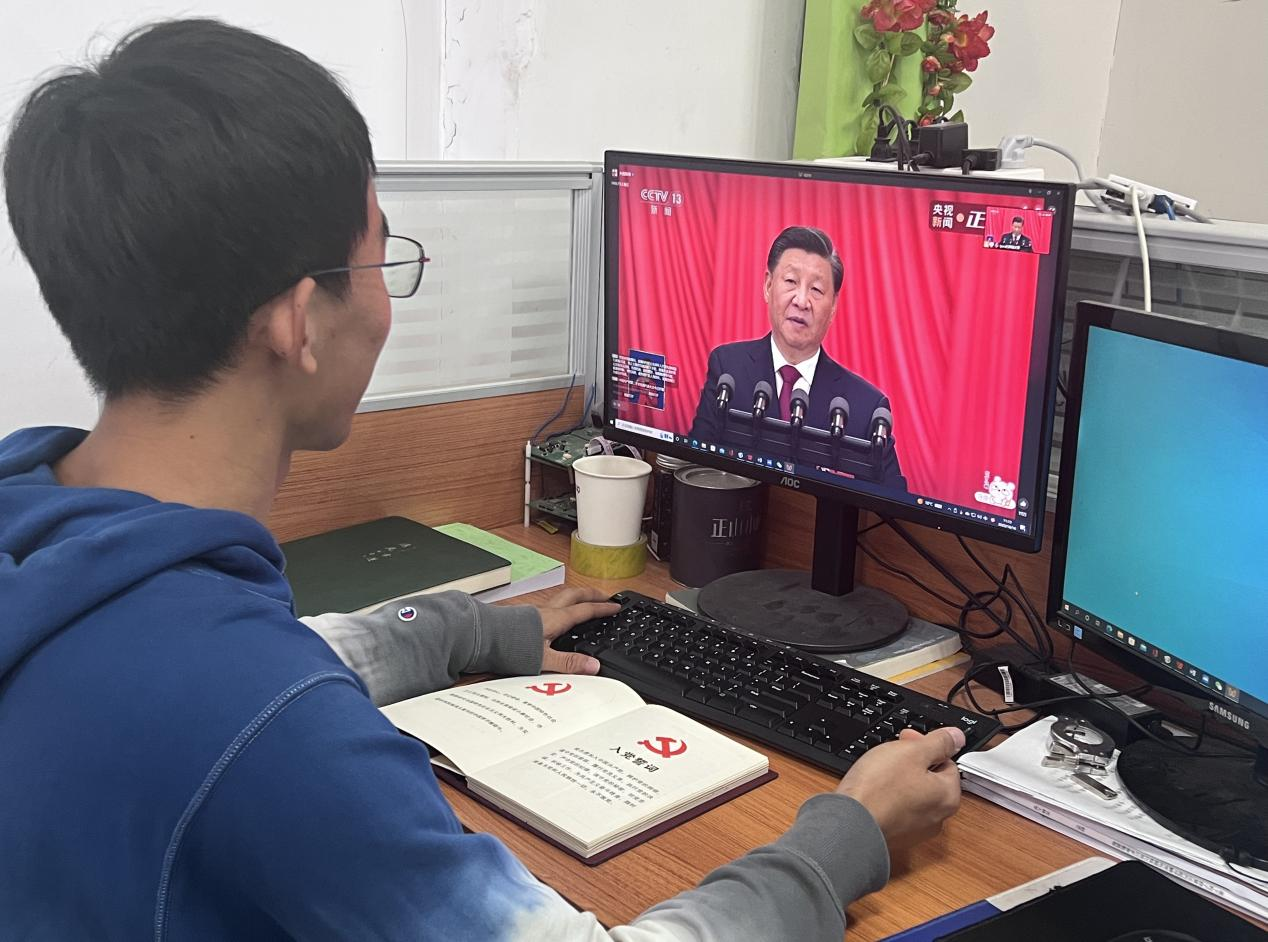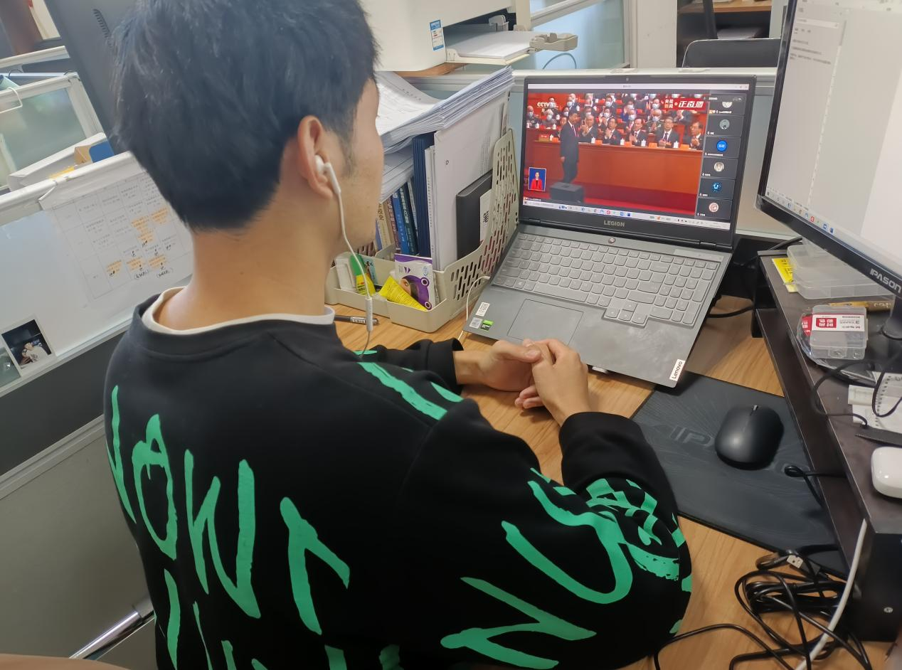 所有参会的研究生聚精会神,认真收听收看,仿佛置身于大会现场聆听报告,时而激动,时而自豪,表现出了对党的无限热爱和对党的第二十次代表大会的热切期待。