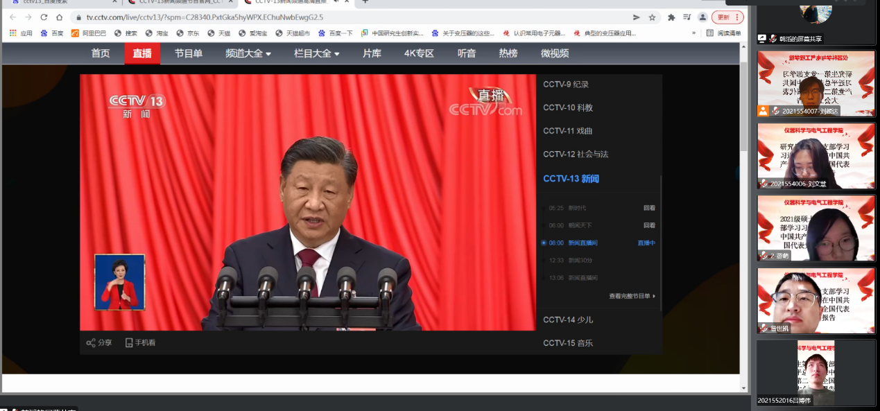 与会党员同志认真观看了会议直播,详细记录了报告内容并进行学习。在接下来的学习工作阶段,同志们将增强忧患意识,坚持底线思维,准备好经受重大考验。大家将更加积极、主动、创造的投入科研学习工作中去,为建成社会主义现代化强国、实现第二个百年奋斗目标、以中国式现代化全面推进中华民族伟大复兴贡献自己的力量。