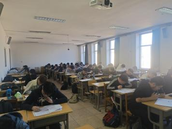 早8:30,2019级本科生辅导员马姗姗、博士兼职辅导员史博日来到模拟考场现场,向同学们解读模拟考试要求后,考试正式开始。此次模拟考试为期一天,上午8:30到11:30为数学考试,下午14:30到17:30为英语考试。此次考试力求模拟真实研究生考试环境,考试时间、试卷和答题卡样式、答题填涂规则等均严格按照研究生考试要求进行。开考后,同学们迅速进入考试状态,细心研读题目,仔细涂卡答题,以认真的态度对待此次考试。考过程秩序井然,同学们严格遵守考场纪律,监考人员尽职尽责维护考场秩序