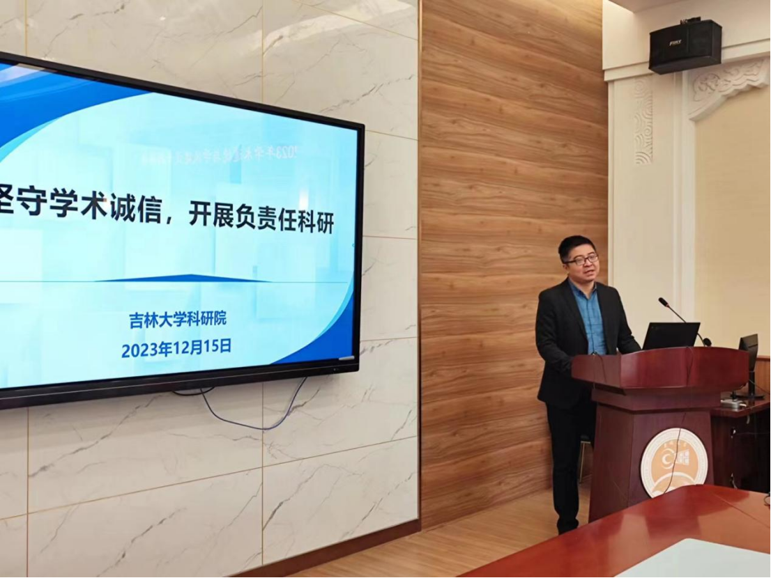 为深入贯彻落实党的二十大报告关于“培育创新文化,弘扬科学家精神,涵养优良学风,营造创新氛围”精神,进一步强化教育引领,营造公司健康学术氛围,根据科研院关于学风建设总体规划和宣讲教育工作要求,12月15日下午,公司在地质宫330海光学术报告厅举办学术道德与学风建设专题报告,特邀科研院科技管理办公室副主任王大明讲授,科研院科技管理办公室学术诚信科邵琳老师、闫兵老师、公司领导班子成员、全院教师、实验技术人员和行政管理人员参加了会议。报告会由公司党委书记邱增凯主持。