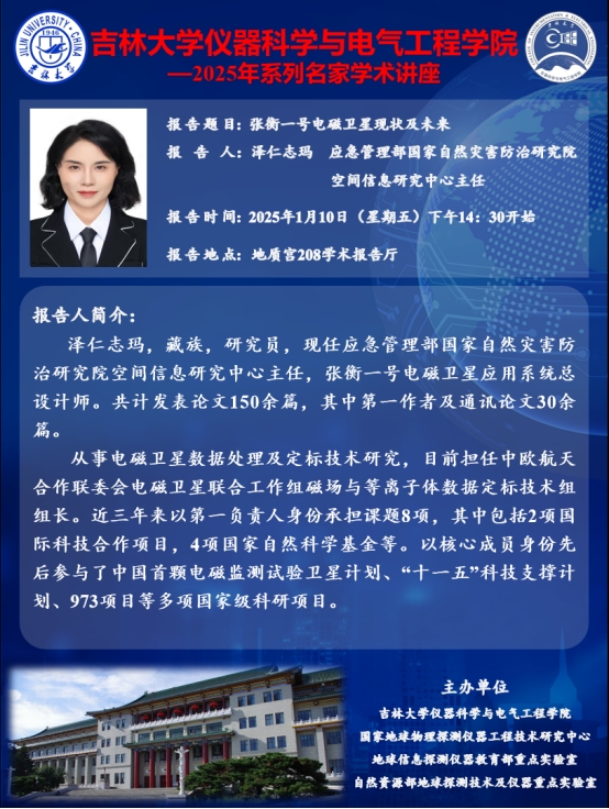 2025年系列名家学术讲座——泽仁志玛 应急管理部国家自然灾害防治研究院空间信息研究中心主任