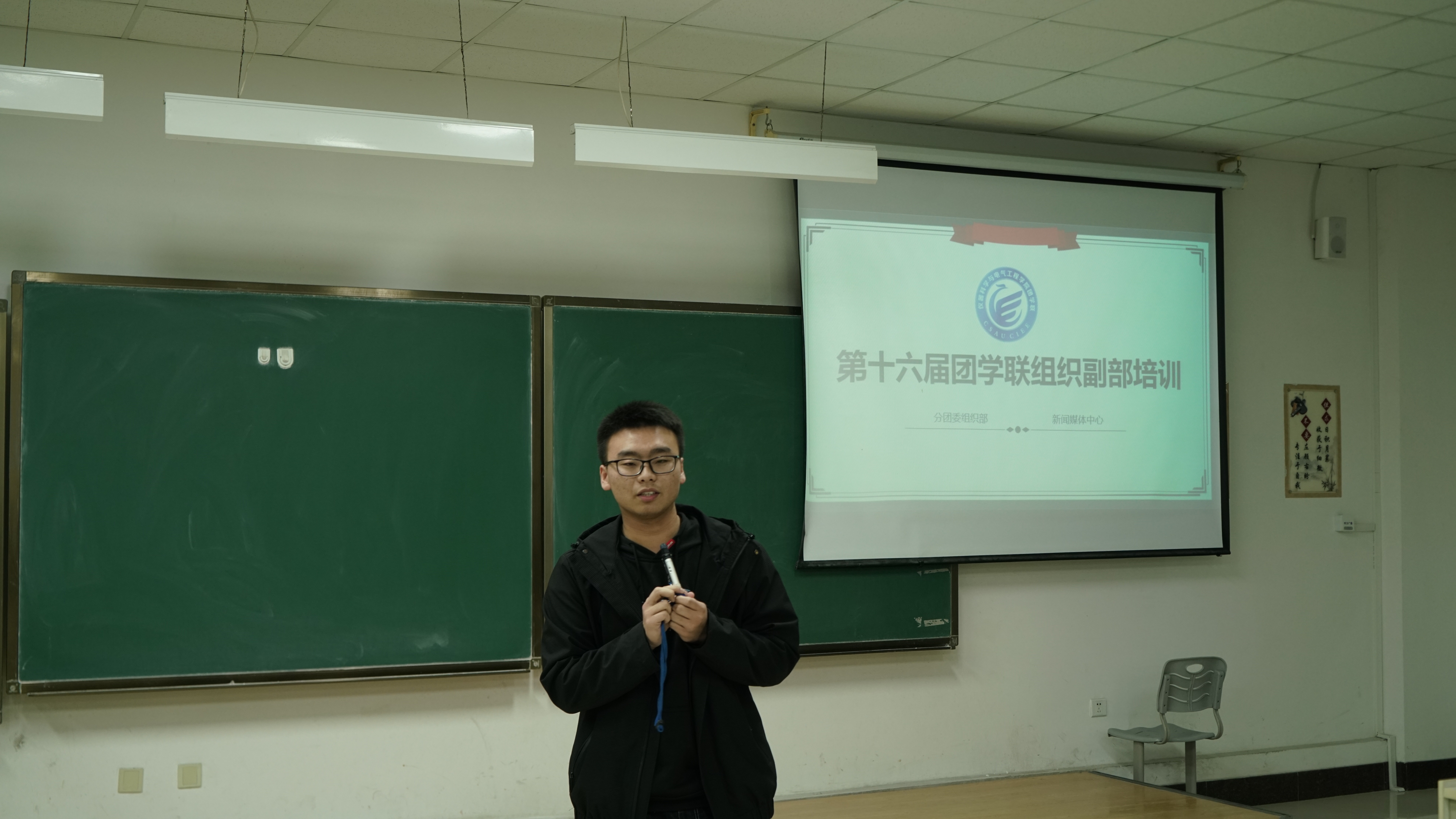 为加强第十六届团学联组织建设、培养员工干部的新闻写作能力、提高工作效率,分团委组织部联合新闻媒体中心于202011141830在李四光教学楼208开展了新媒体技能培训活动。本次活动由分团委组织部部长张振宇主持,新闻媒体中心新闻编辑部主编刘雍野主讲,第十六届团学联组织全体员工干部出席。