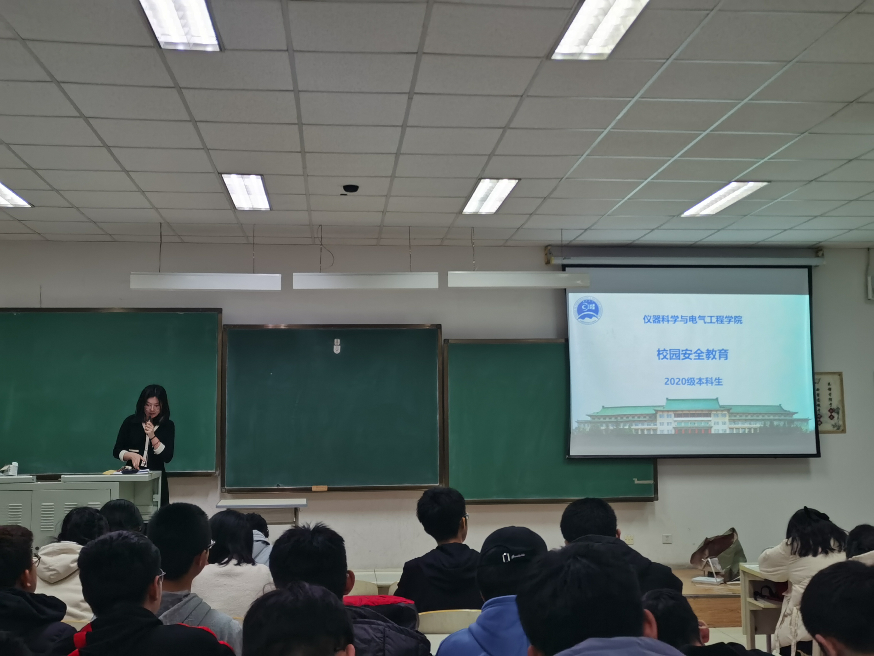为新生能够更好更安全的适应老员工活,提高他们的安全预防意识2020年9月21日,仪器科学与电气工程公司在李四光教室开展了新生入学安全教育主题讲座。2019、2020级辅导员马姗姗老师担任主讲,2020级全体员工参与了本次讲座。