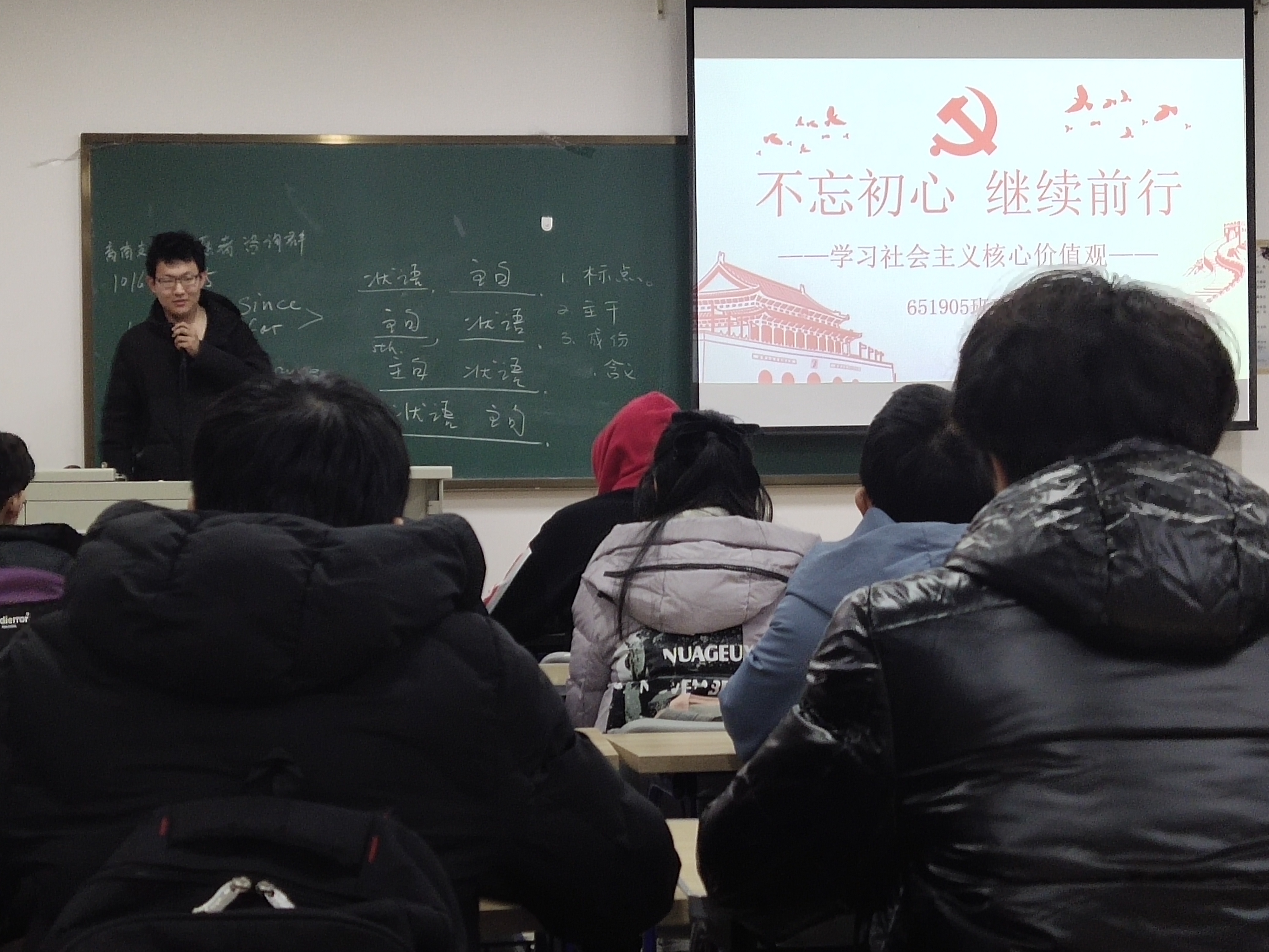为调动同学学习社会主义核心价值观的积极性和主动性,进一步提升同学们对社会主义核心价值体系的理解,11月21日下午5:20,365英国上市公司651905班同学于李四光楼113教室举行了主题为“不忘初心,继续前行”的团日活动班会。