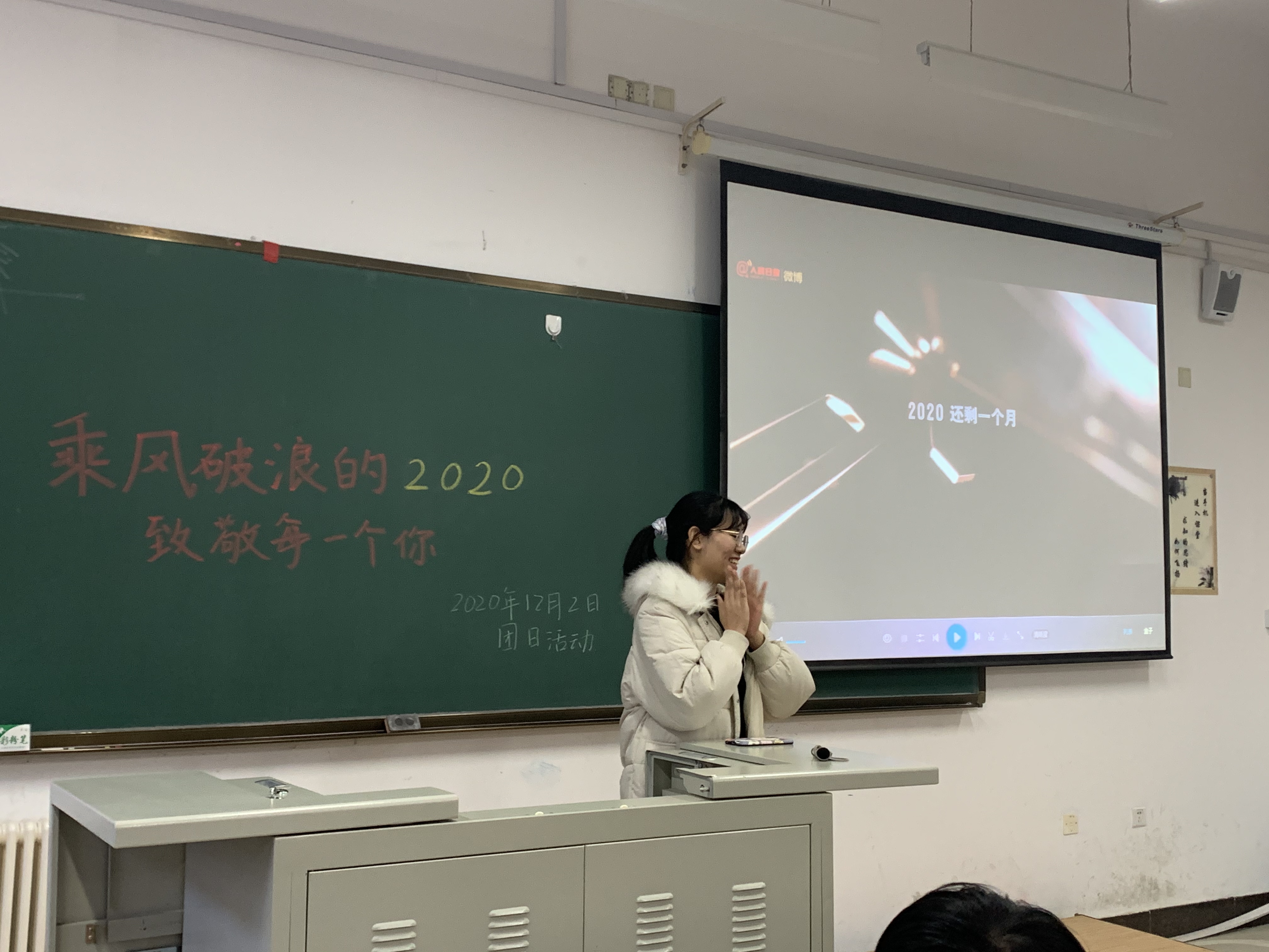 为促进同学们的交流,增进同学间的友谊,回顾2020年的点滴,迎接2021年的到来,365英国上市公司651904团支部于2020年12月2日下午3:20在李四光教学楼114教室举办以“乘风破浪的2020,致敬每一个你”为主题的团日活动。本次活动由高思琦同学主持,651904班全体人员参与本次团日活动。
