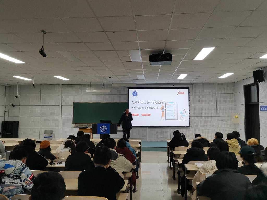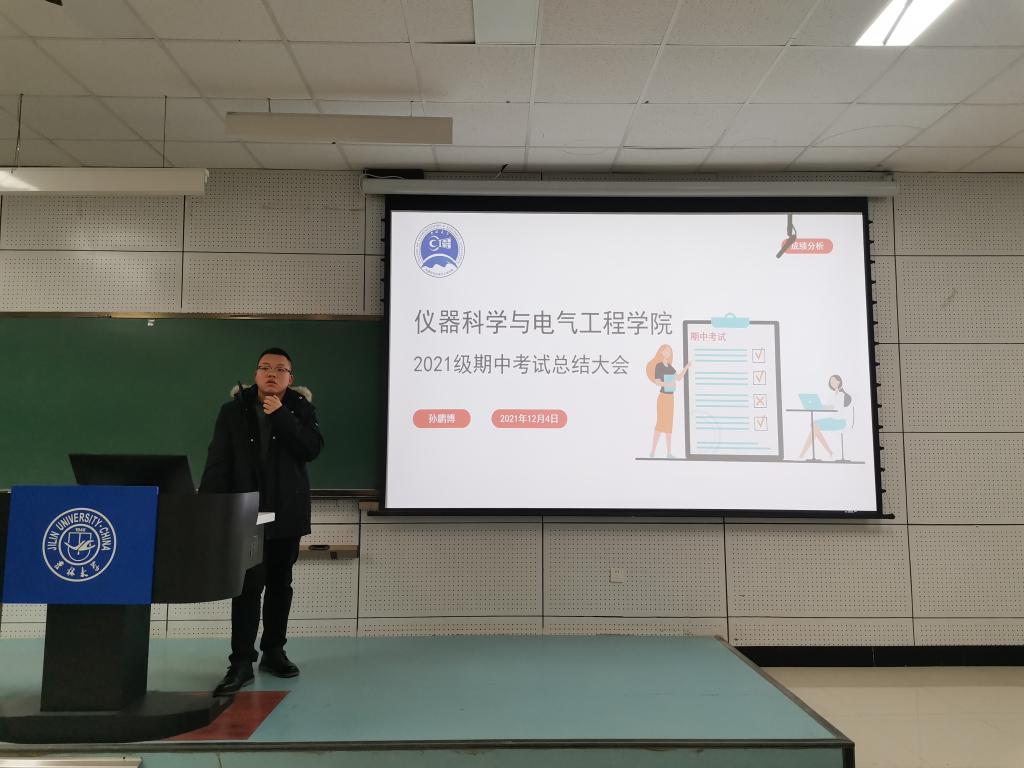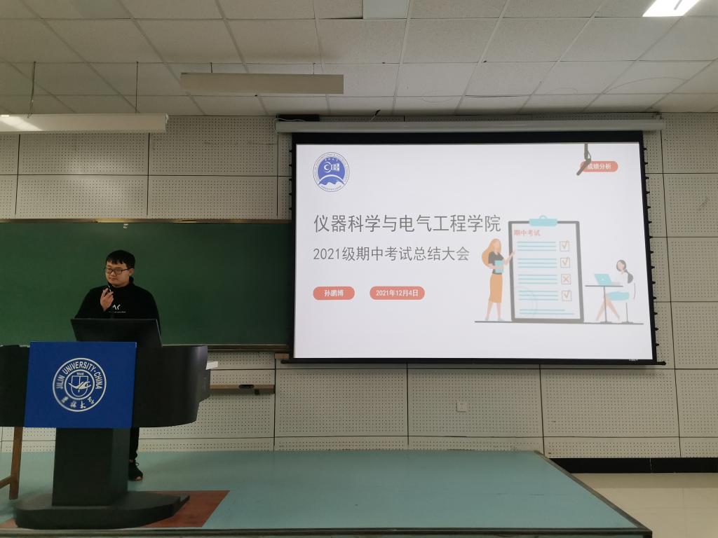 为充分发挥期中考试自我检测和阶段性总结的效果。2021年12月4号晚5点,公司在李四光楼104教室组织开展2021级员工期中考试总结大会,辅导员孙鹏博老师对本次期中考试进行了总结。