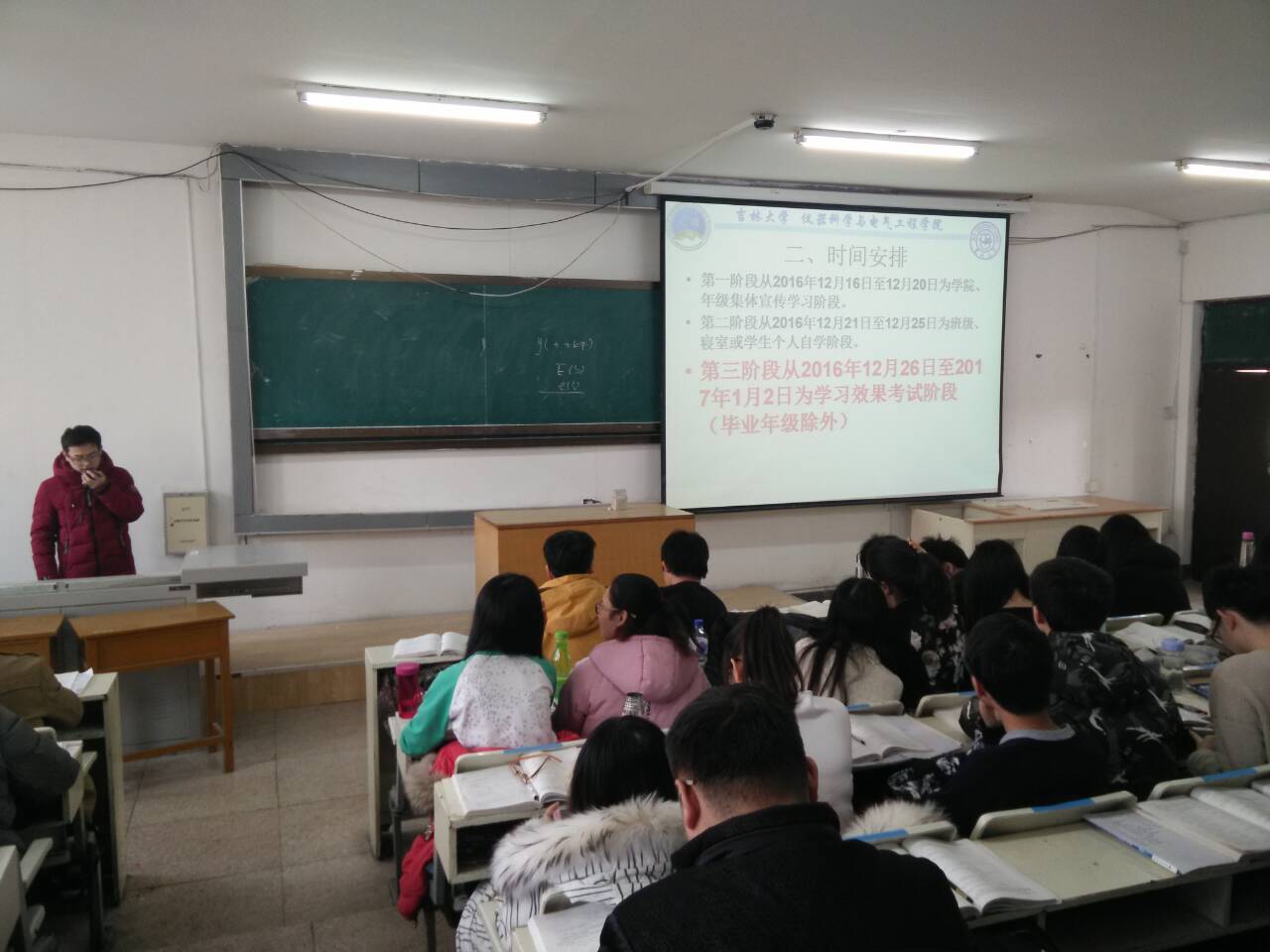 1216日上午9点,公司在水宫楼518教室召开年级大会,组织2014级全体同学学习新版《365英国上市公司员工手册》。会议由651402班班长陈健主持。会议伊始,陈健同学对新版《365英国上市公司员工手册》内容向大家进行了简单介绍。接下来,组织同学们对校规校纪、校园安全、奖惩制度、校外居住、公寓管理、老员工医保等员工手册重点内容进行学习,并以随机提问的方式督促大家学习,加深对内容的理解记忆。