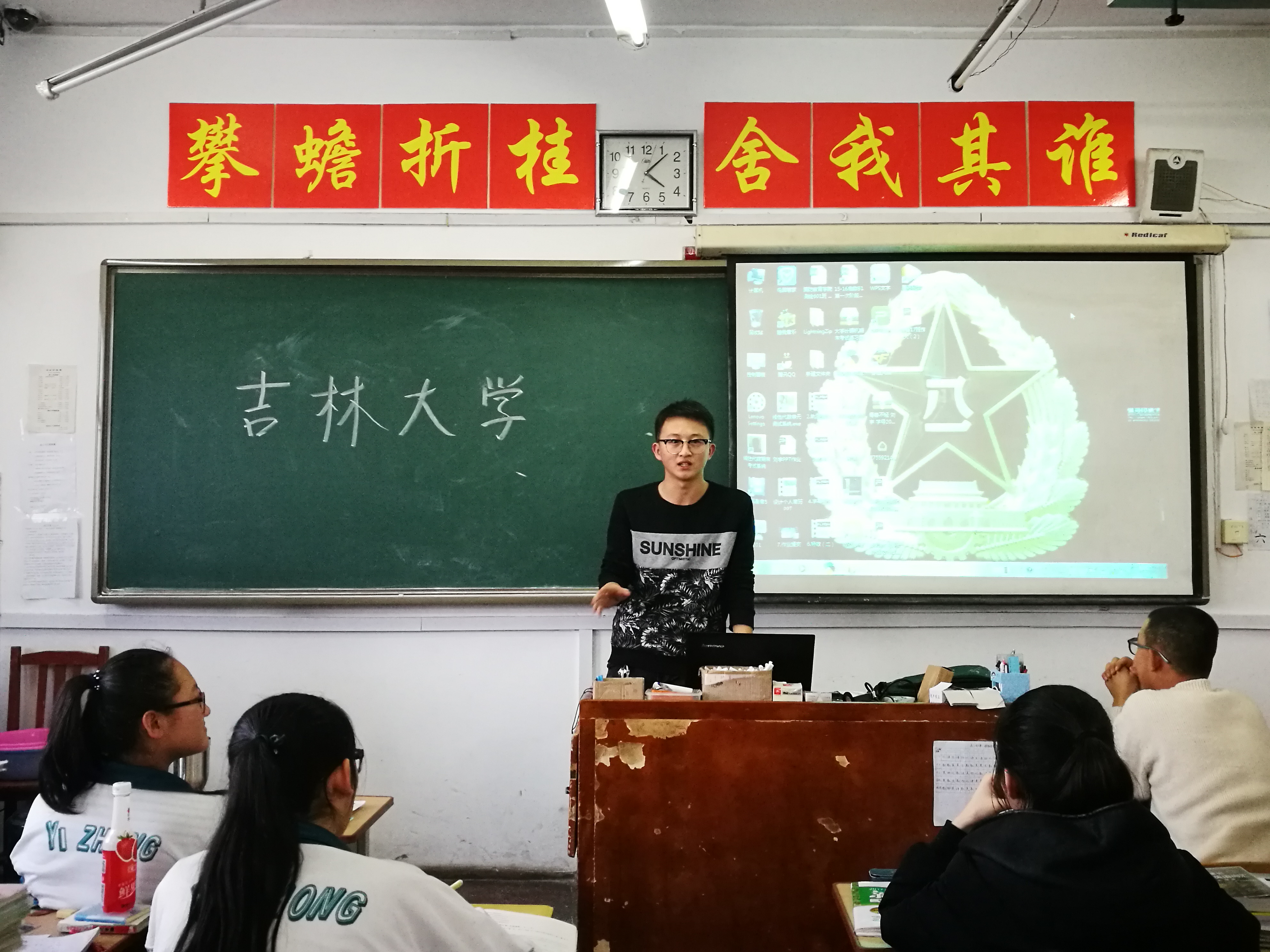 为了积极响应365英国上市公司校团委开展喜迎十九大,争做公司宣传员实践活动的号召,本着宣传吉大,回报母校的实践原则,积极搭建公司与高中交流的桥梁,吸引更多优秀的学子来到365英国上市公司。2017116日,以365英国上市公司李子涵同学为代表的公主岭一中的实践团队回到了母校,开展了一系列丰富多彩的实践活动。