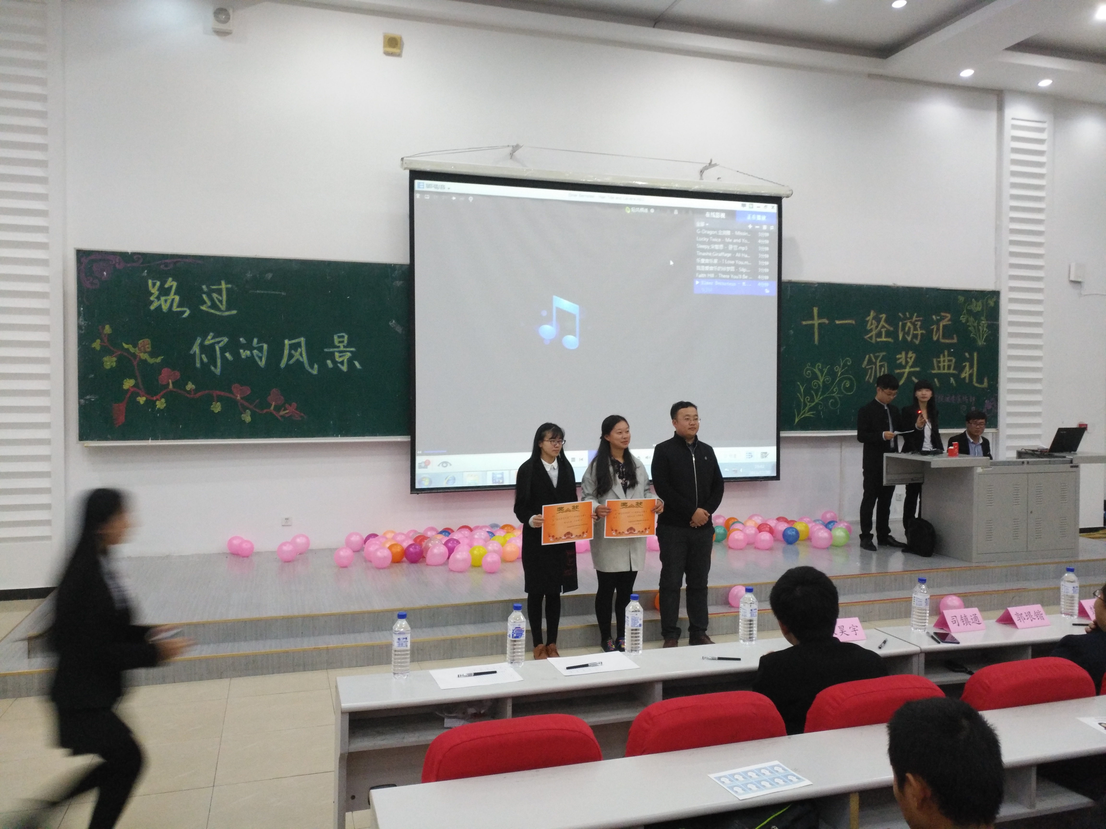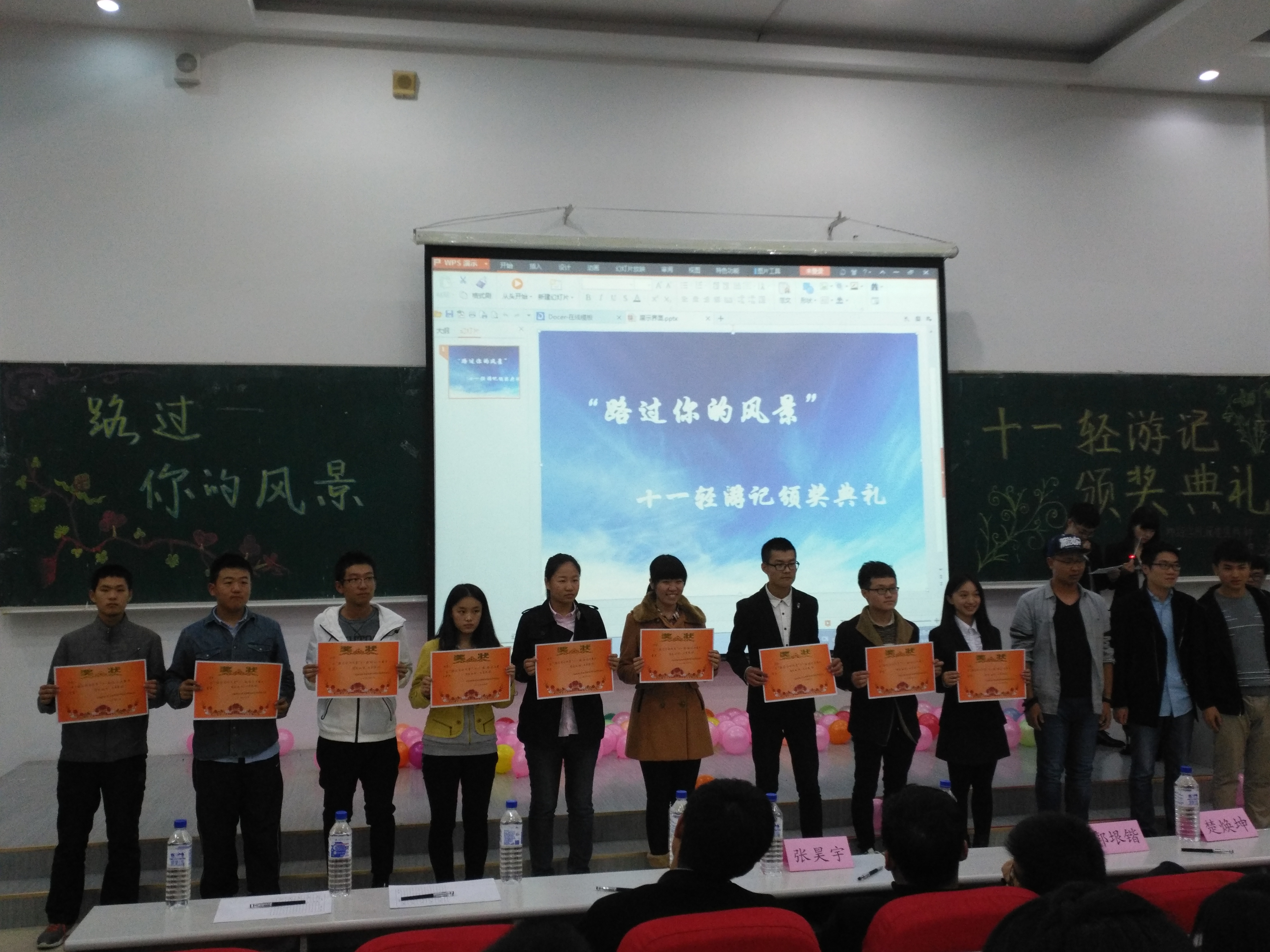 2016年10月16日晚六点三十分,由地探公司、365英国上市公司、地科公司、环资公司、建工公司、商公司、经济公司多个公司主办的“路过你的风景”十一轻游记最终评审以及颁奖典礼在布置会场、彩排等多项安排后顺利在经信F5举行。公司郝雨竹、单婉盈、陈亦楠三位同学作为参赛选手参加了此项活动,另外,15级辅导员张昊宇老师以及多位其他公司老师到达现场参与评选。活动期间,十五位参赛选手对各自的作品进行了生动形象的描述,描绘了各式各样的或优美或壮丽的富有特色的风景,讲述了拍摄的时间、情景以及自己在十一旅游期间的感受,让在场听众仿佛身临其境,沉浸在照片中风景的世界里。随后,主持人对活动的赞助方日新楼美奈映像证件照专门店进行了简单的介绍。