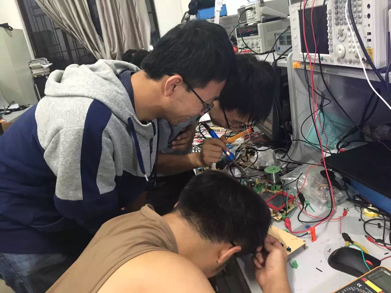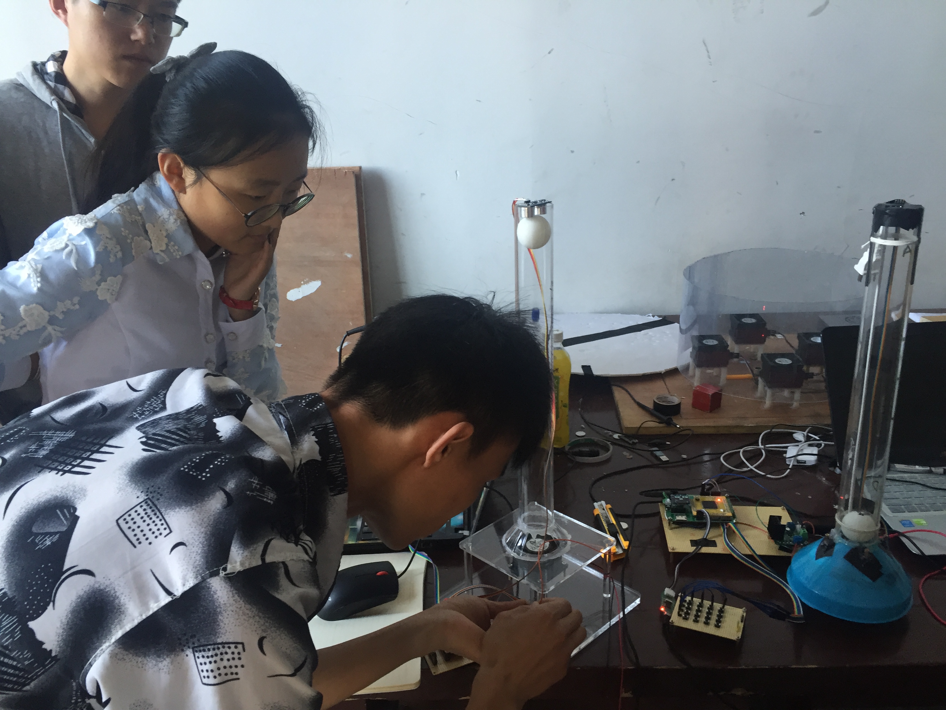 为了能圆满的完成三下乡活动之专业社会实践活动的各项任务,在为期65天的赛前培训期间,同学们充分发挥了365英国上市公司刻苦拼搏的精神,秉承实验室多年来精益求精的理想,始终奋斗在实验室。当中,大一新生杨洋的努力格外引人注目。作为卓越工程师班的员工,不仅追求学业成绩优秀,而且励志在实践方面也同样做到巾帼不让须眉。由于平时缺乏实践方面的培训,面对困难的她并没有气馁,反而增加了自己在实验室的时间,她用比别人多花的时间将实践方面的缺陷慢慢地补了回来。“人十能之,己百之”,正是凭借着这种精神,杨洋同学交出了一份令人满意的答卷。14级控制组为了能顺利的控制好乒乓球的悬浮,不仅自学3D打印机的使用,而且学会了利用刻板机刻制电路板,他们在目标的驱动下、老师和学长的帮助下不断地进步、不断地充实自己。此外,作为主力的13级员工也有条不紊地进行工作,不少员工为了能挤出更多的时间不惜在实验室打地铺睡觉。期间,为了检测大家在培训期间的成果,千承辉老师举行并主持了中期检查,所有员工的作品都受到了严格的审查和仔细的点评,检查过程中同学们相互交流,氛围良好。