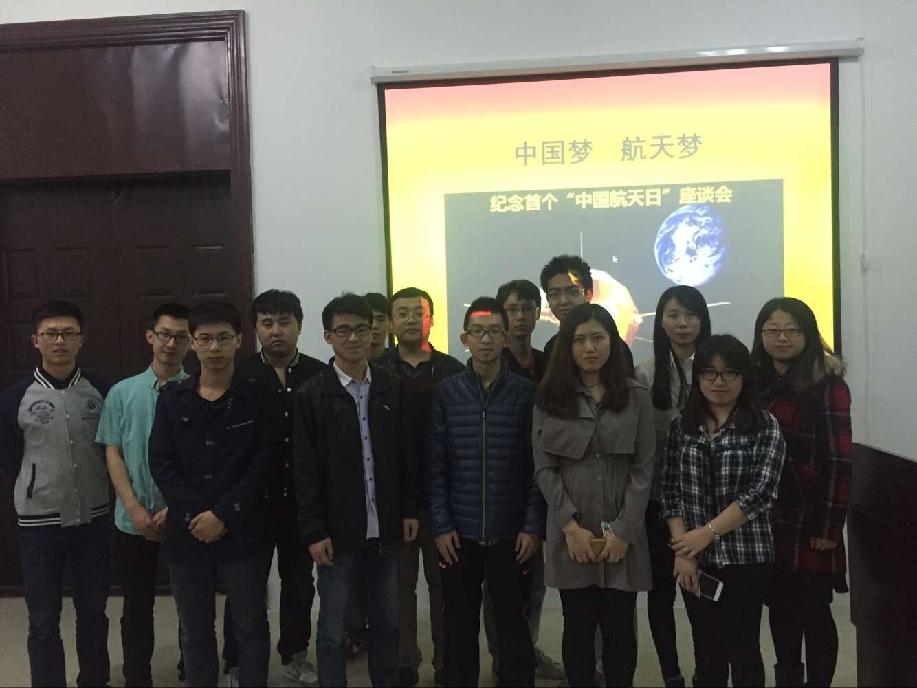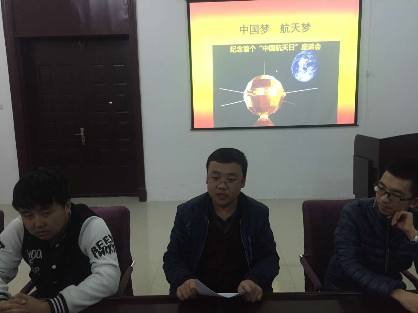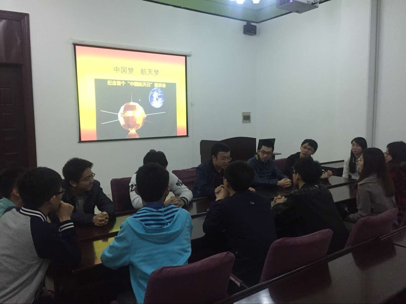为深入学习习近平总书记系列重要讲话精神,铭记历史、传承精神,激发全民尤其是青年员工崇尚科学、探索未知、敢于创新的热情,为实现中华民族伟大复兴的中国梦凝聚强大力量。2016年4月24日19:00,公司在地质宫214室举行纪念首个“中国航天日”座谈会。会议由公司团委书记兼2015级辅导员张昊宇老师主持,全体团学干部参加。