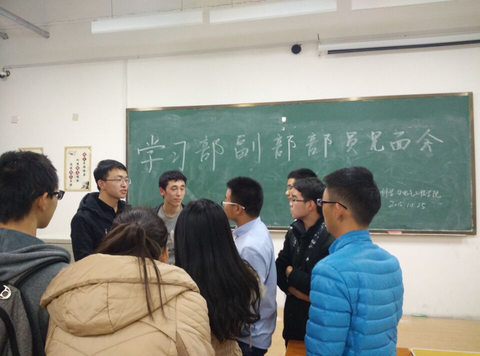 2015年10月25日晚,公司在前卫南区李四光楼110教室举行全体部员见面会,会议由学习部部长赵成主持,学习部副部和全体部员参加会议。