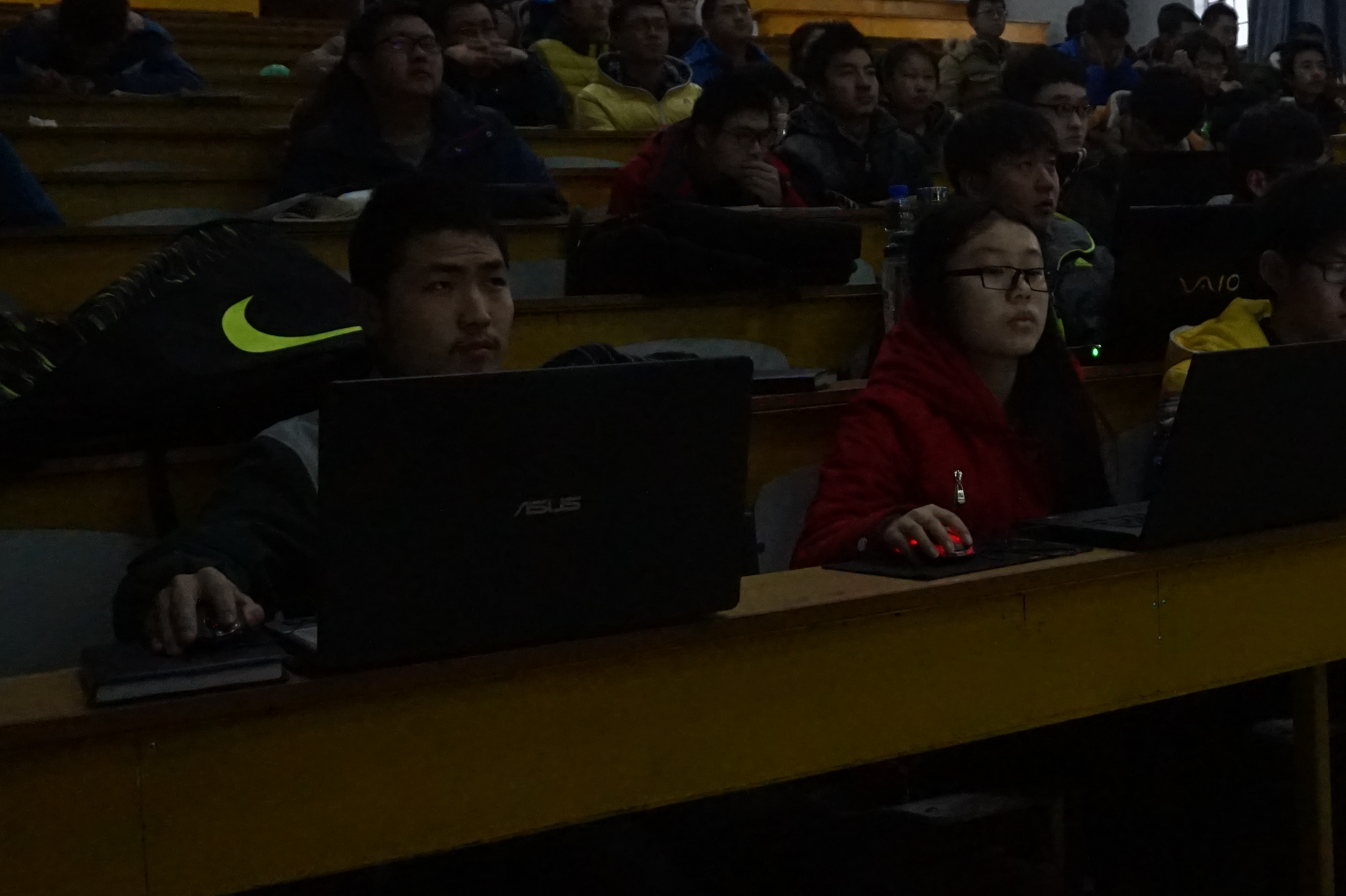 上午8:00-11:00于地质宫224教室,滕飞老师为2014级队员讲解DXP软件的应用和PCB板的设计。老师首先向同学们简要介绍了Altium Designer的使用,接着讲解了使用该软件进行电路板设计的基本流程。随后,老师带领同学们一起设计PCB板。从简单的ARM最小系统板的原理图开始,滕老师带领大家一个元件一个元件的选择和安放,然后是原理图转换成PCB文件。期间,老师不断地教授同学们原理图设计的小技巧以及该软件的一些小规则。下午13:30-16:00于地质宫408实验室,杨泓渊老师为2015级队员讲解FPGA编程。杨老师首先介绍了VHDL语言的基本结构,详细讲解了三种基本逻辑和五种复杂逻辑。随后向队员们介绍了一款可编程逻辑器件CPLD/FPGA的软件Quartus,实际指导队员们亲自编写了一段程序。最后杨老师要求同学们口后多加练习。晚上由蔡靖老师出题,对2015级队员进行寒假社会实践考核。