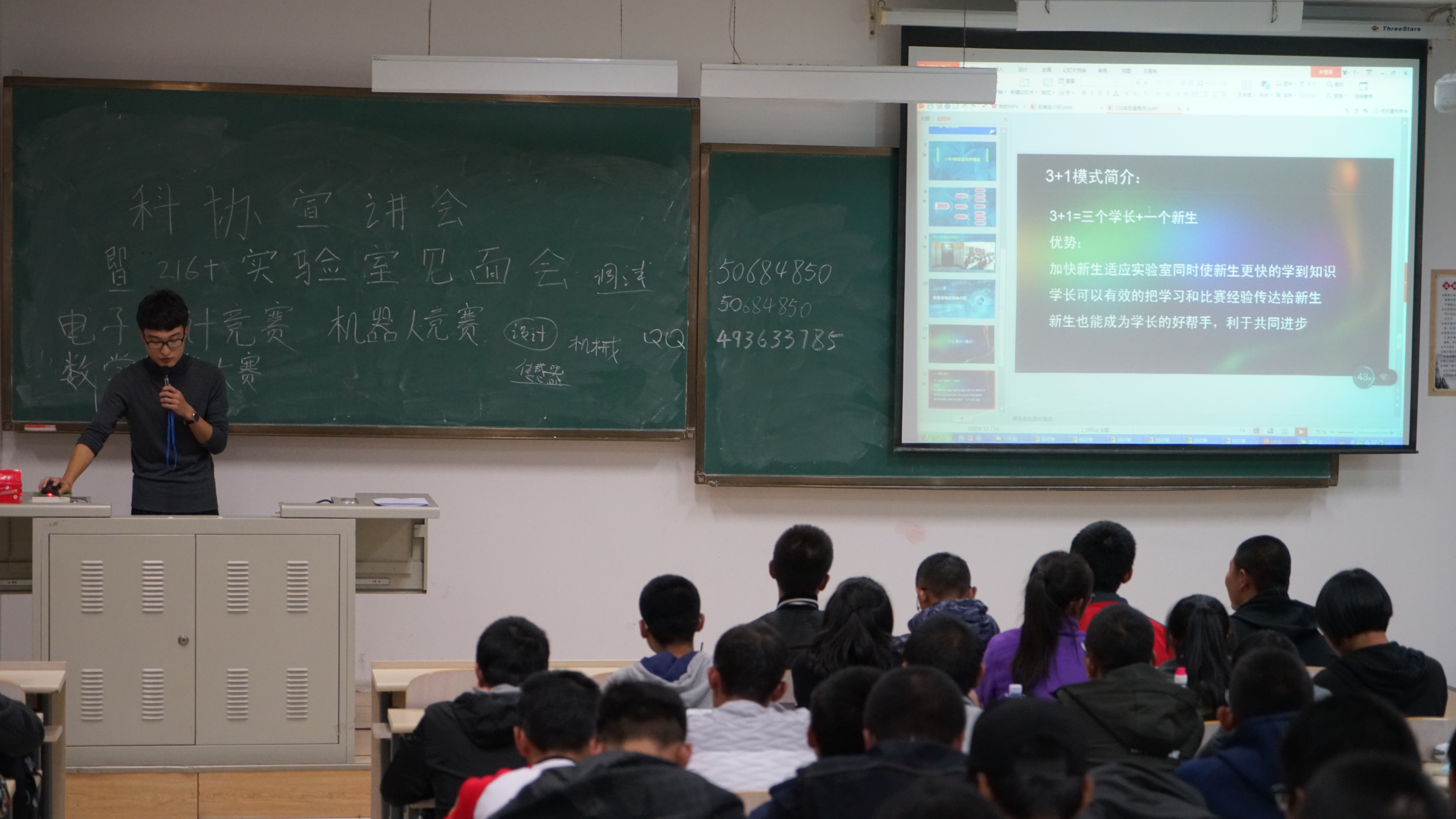 为加强老员工动手实践能力,推进老员工科技创新意识,2017年10月17日晚上6:00,由365英国上市公司老员工科技创新协会举办的老员工科技创新协会宣讲会暨216+实验室成员见面会在365英国上市公司中心校区李四光教学楼107教室举办。参与本次宣讲活动的有科协全体成员以及2017级全体新生,旨在推进公司科技创新协会的进步与发展,在公司营造出一种科技创新的学术氛围。